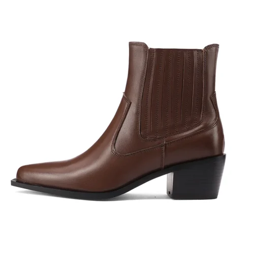 2025 nova tendência de couro de vaca genuíno botas de tornozelo feminino preto marrom bloco saltos preto apontou toe moda chelsea botas plus size