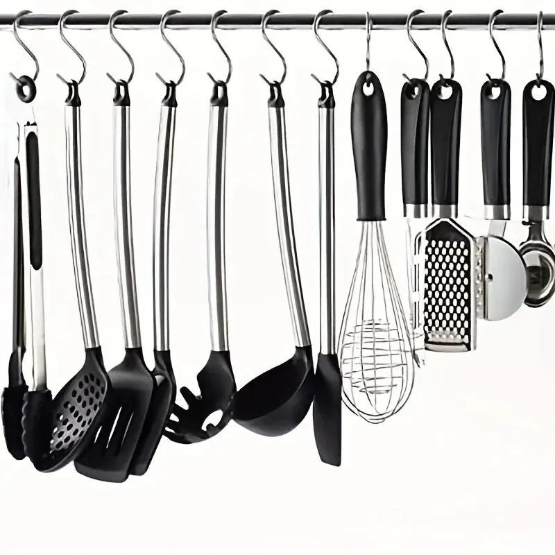 10 pçs de aço inoxidável em forma de s gancho cozinha banheiro roupas ganchos multi-funcional metal pendurado gancho