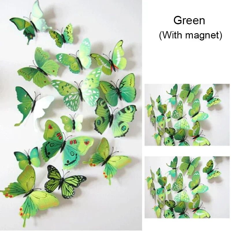12pçs decoração de parede de borboleta 3d de pvc, adesivos de parede de borboletas fofas, decalque de arte, decoração de casa, quarto, arte de parede, papel de parede, decoração de festa