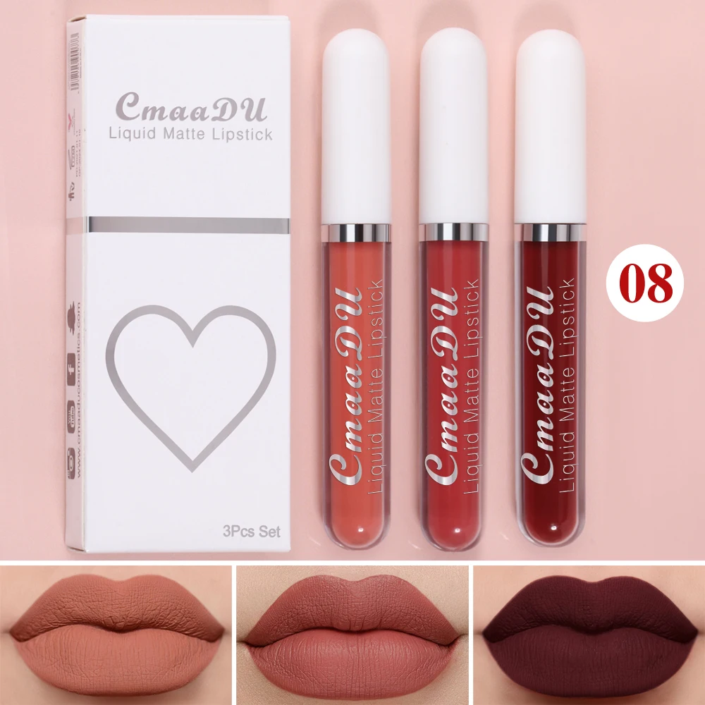 3 pçs batom fosco conjuntos de brilho labial de longa duração não-desvanecimento à prova dwaterproof água copo antiaderente presente requintado feriado diário universal