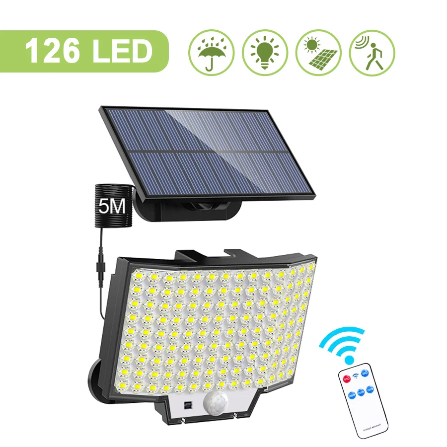 348LED Solar lamp outdoor security light with motion sensor waterproof 126/328LED powerful spotlight solar for garden Garage
