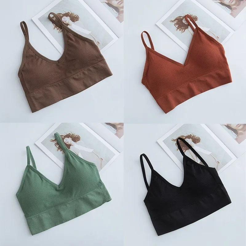 4 pçs sutiãs femininos confortáveis sem fio confortável sem costura sutiã esportivo estiramento sem fio sutiãs de yoga com almofadas de sutiã removíveis