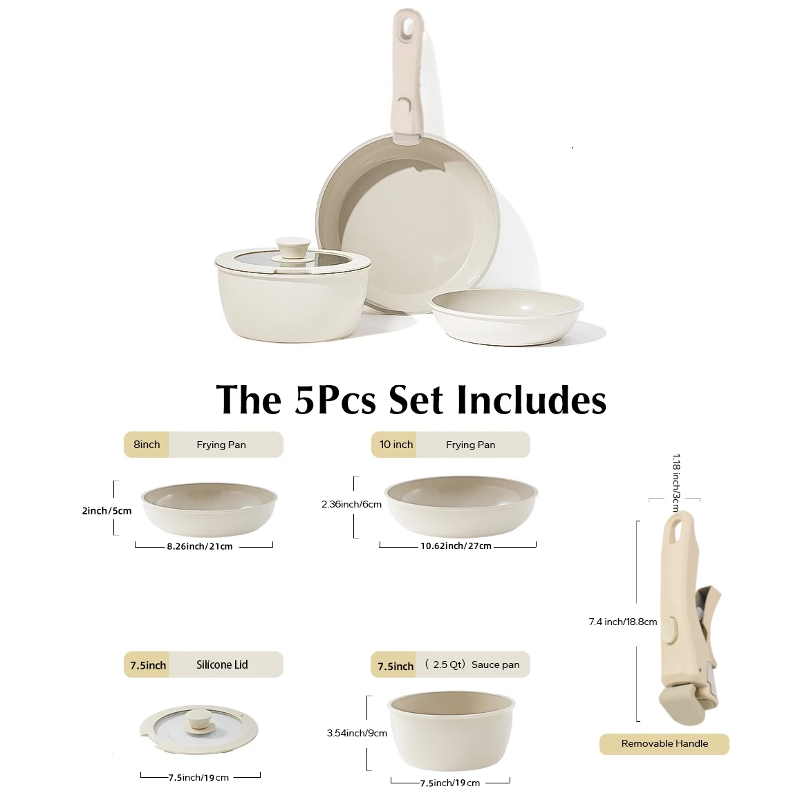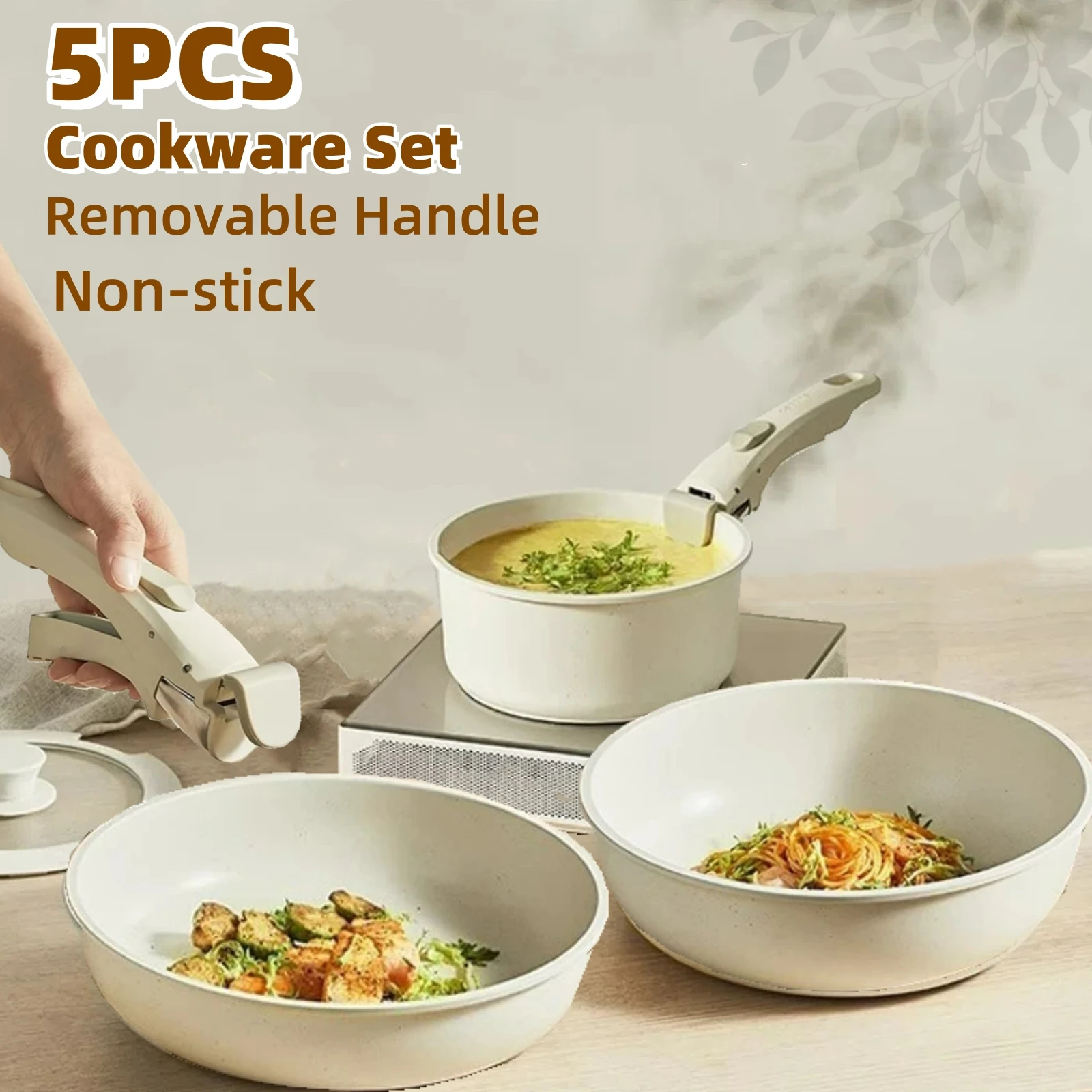 5 pçs conjunto de panelas de granito panelas antiaderentes conjunto de cozinha com alça removível indução rv kit de fogão de acampamento com tampa de vidro