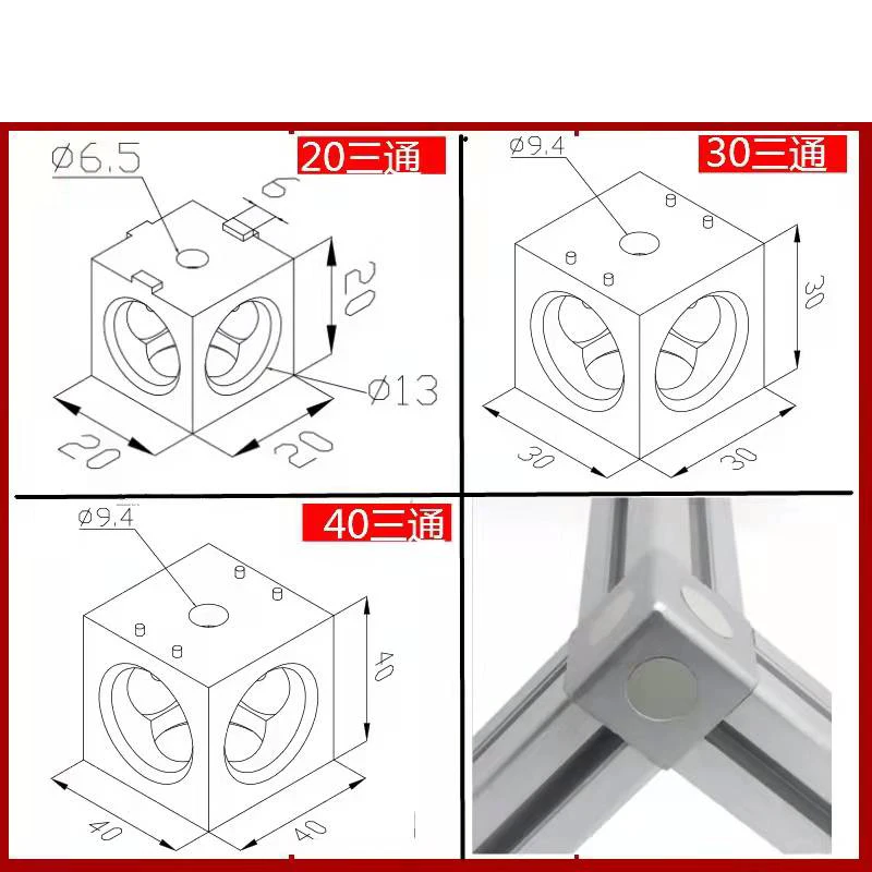 8 peças acessórios de perfil padrão europeu conector bidirecional de três vias 3030/4040 perfil montagem em ângulo reto peças em ângulo reto