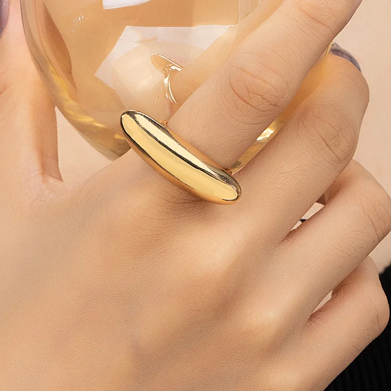 Anéis curvos irregulares únicos para mulheres, anéis de dedos vintage, cor dourada fosca, jóias ajustáveis, festa punk, casamento, 2024