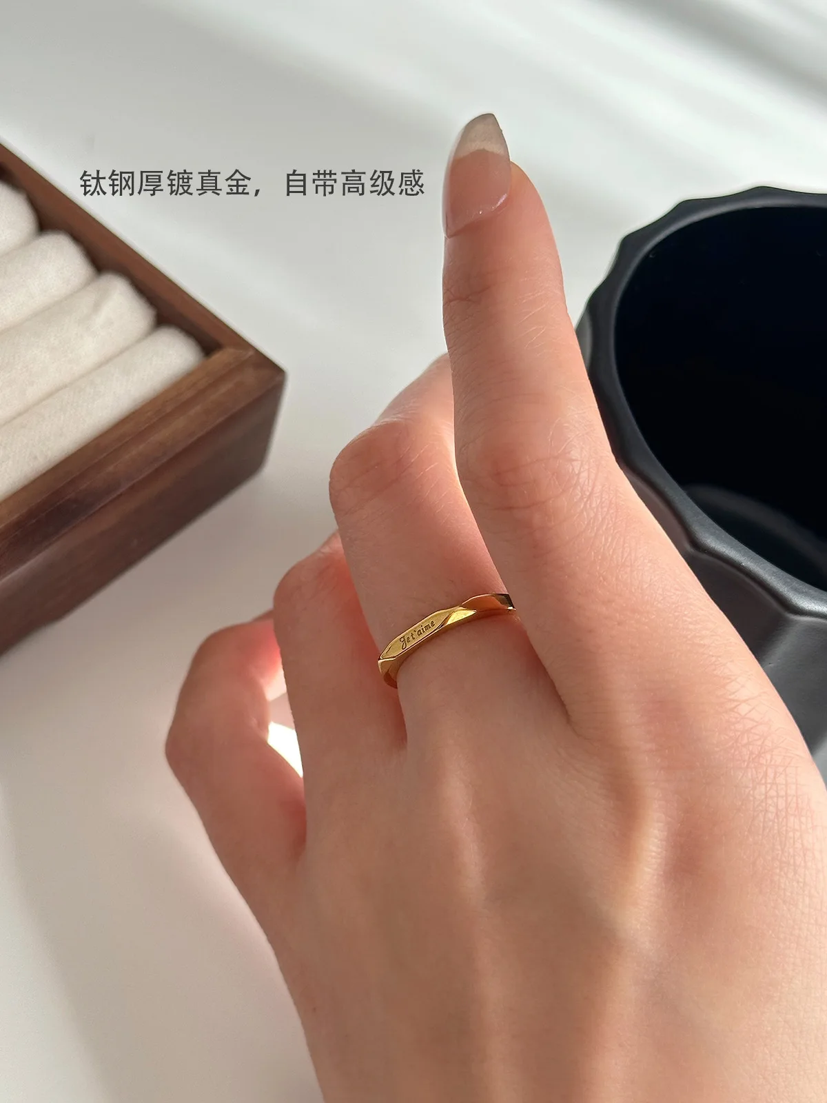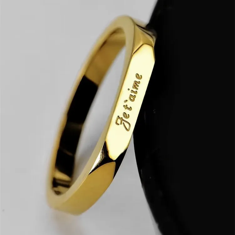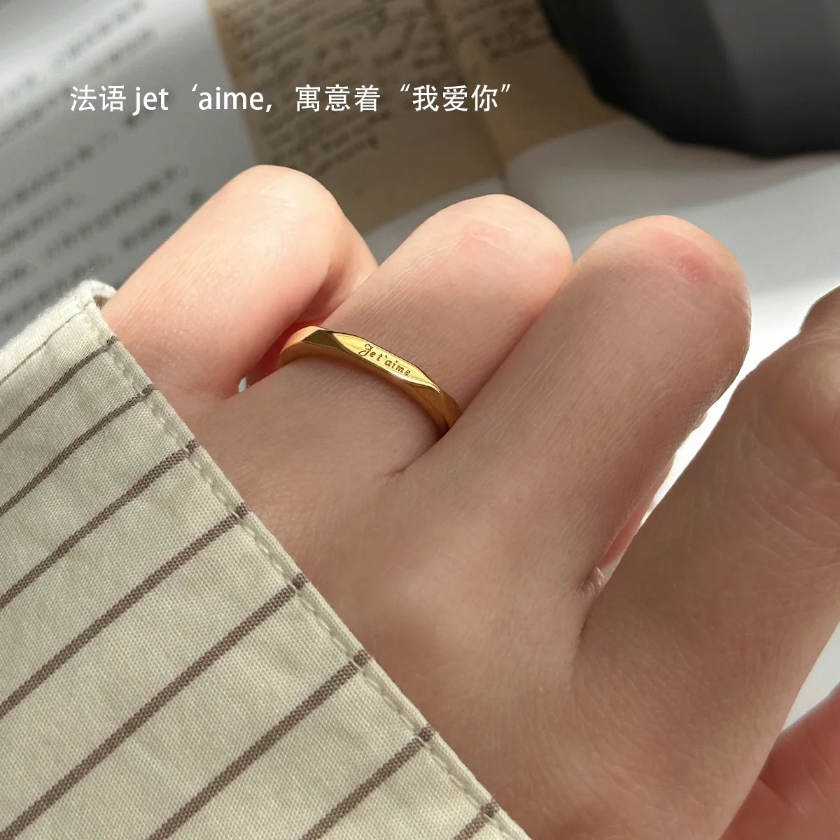 Anel de aço titânio personalizado para mulheres, francês eu te amo, banhado a ouro 18k, não desbotando, elegante