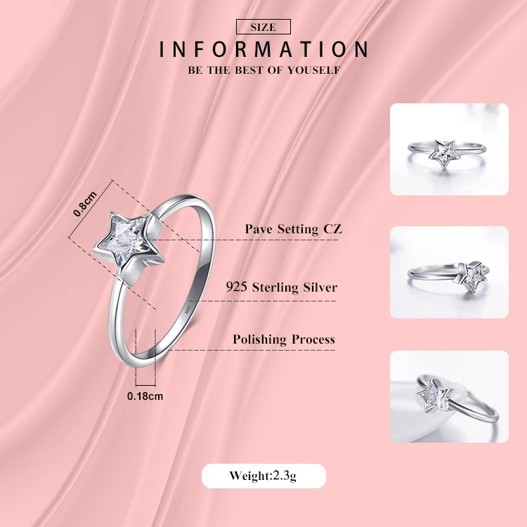 Anel de prata modifican 2021, joia autêntica de zircônia cúbica, anel de estrela de prata esterlina 925, anéis simples para mulheres, presente elegante