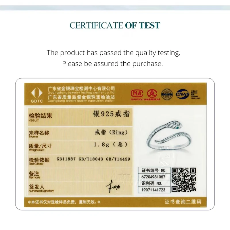 Número do Certificado: bamoer fashion jewelry