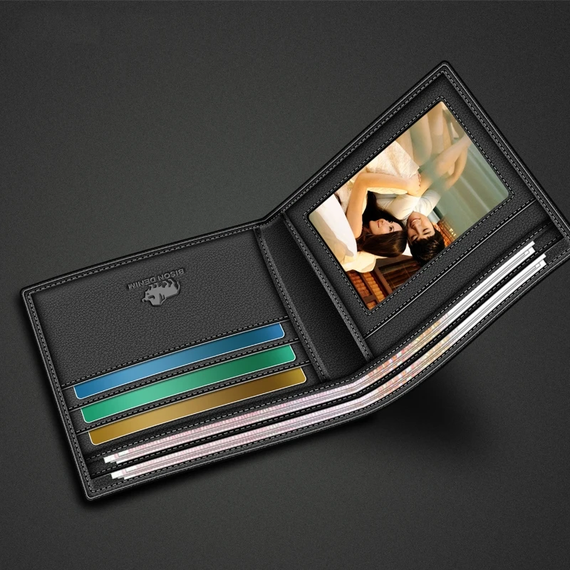 Bison denim homens carteiras de couro genuíno marca de luxo rfid bifold carteira zipper bolsa de moedas titular do cartão de visita carteira n4470