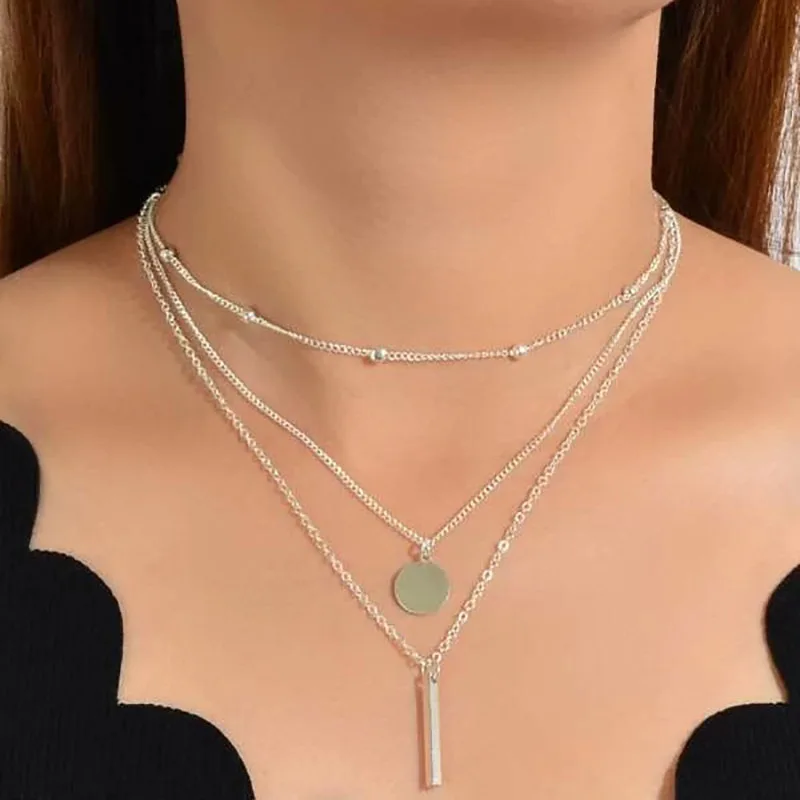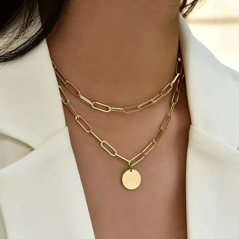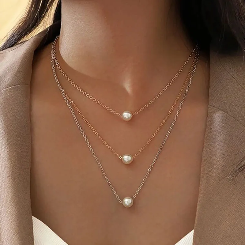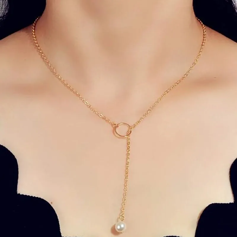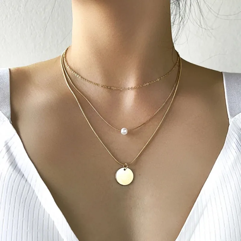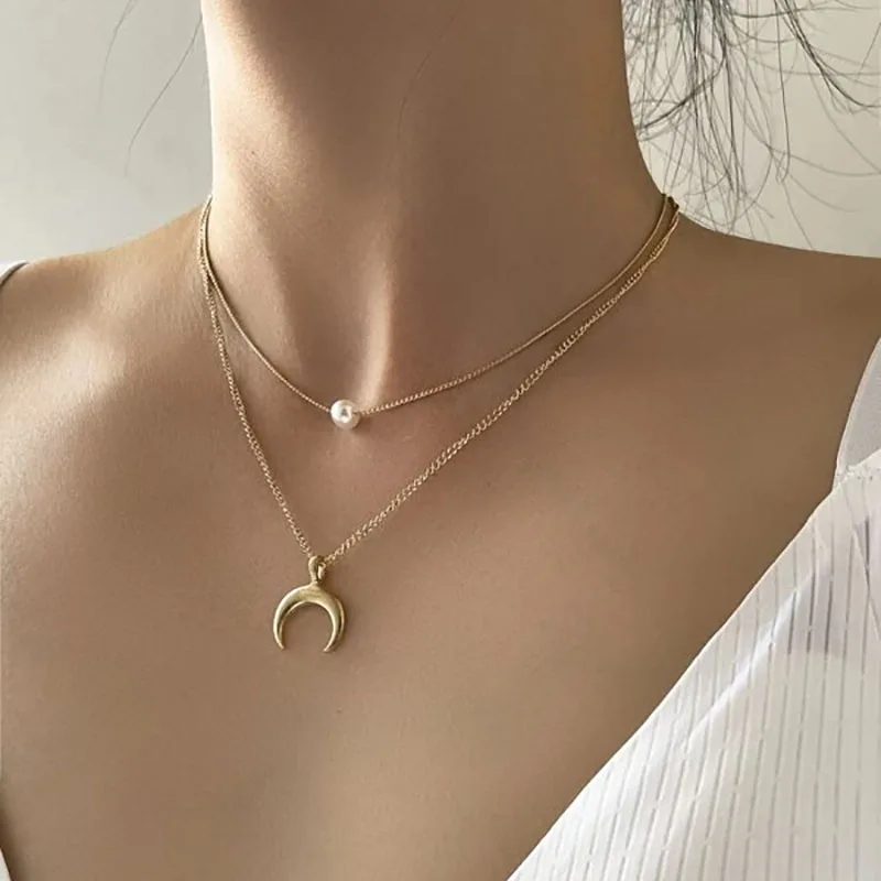 Boho cor de ouro metal simples imitação pérola redonda lantejoulas lua borboleta rosa flor pingente colares meninas moda jóias