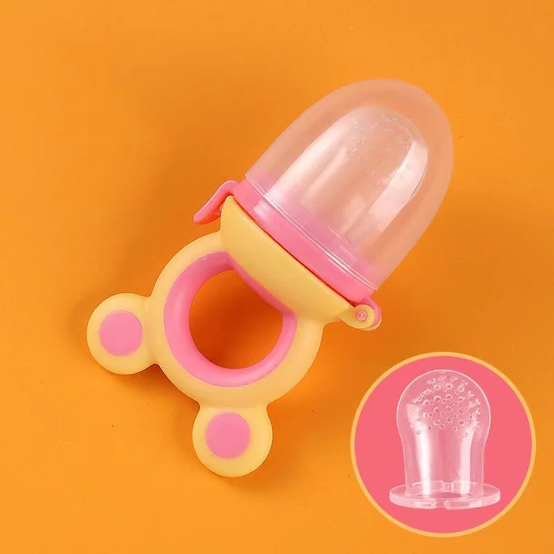 Bolsa de mordida de silicone de qualidade alimentar, saco de purê de bebê, tigela de alimentação, chupeta de 0-3 anos, comida de frutas, orelhas de urso fofas