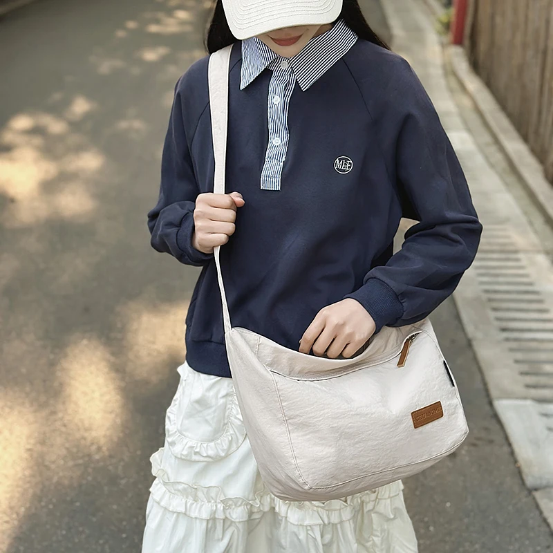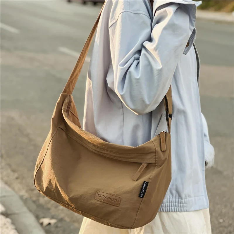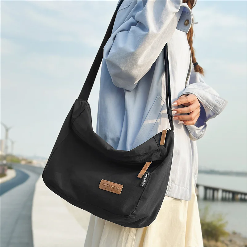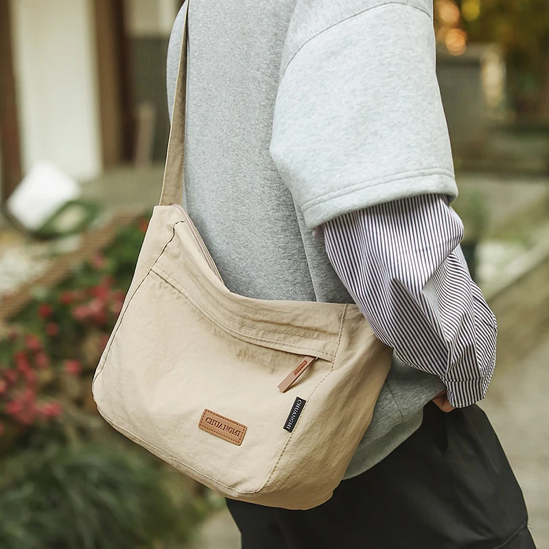 Bolsa transversal de nylon estilo japonês casual de grande capacidade, impermeável, para homens e mulheres jovens.