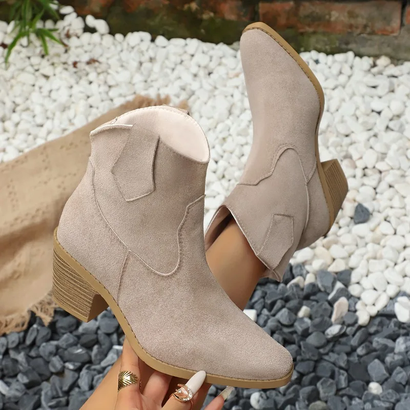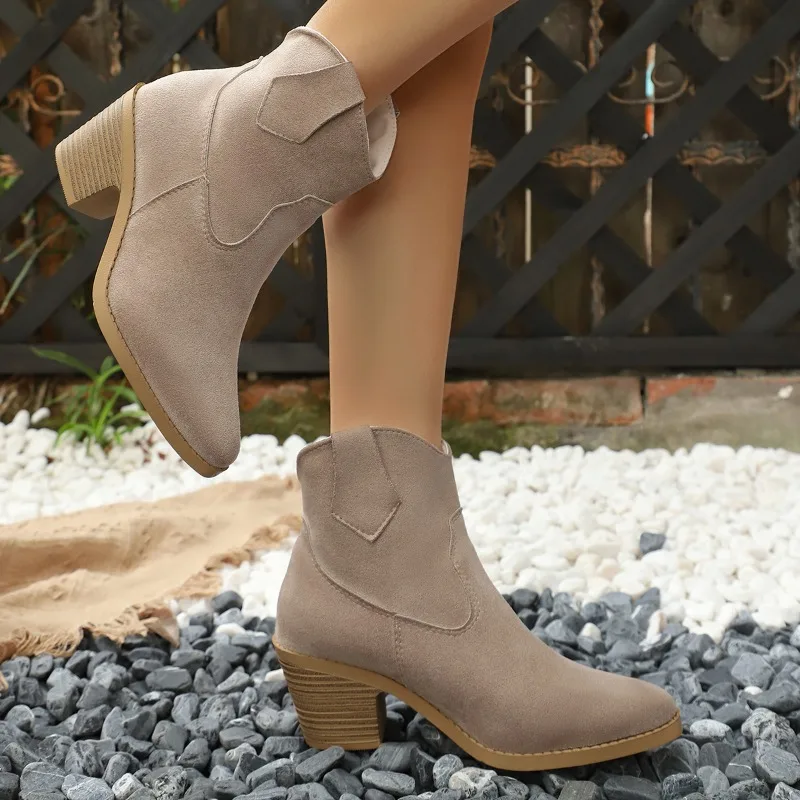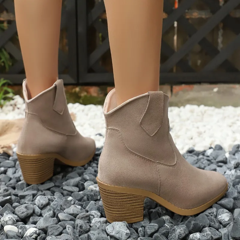 Botas femininas moda bico fino manga touro camurça antiderrapante salto bloco sapatos únicos