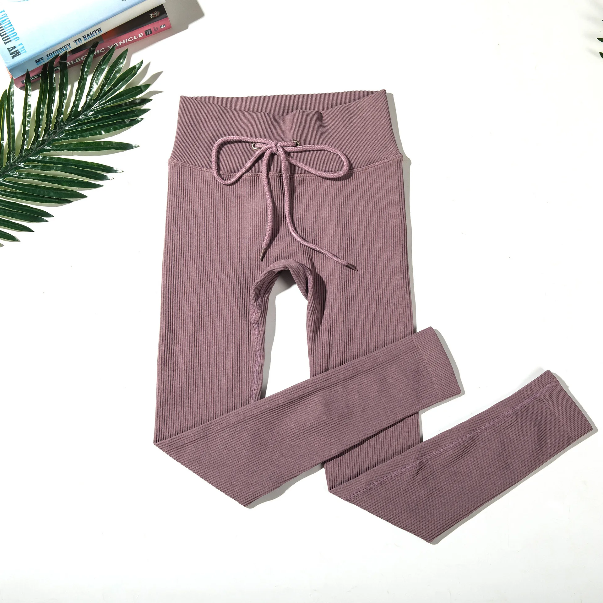Calças de Yoga Esportivo Feminino e Terno de Fitness com Cordão, High-End Sem Costura, Slim Fit, Elástico, Back Lifting, Butt Lifting, 1 pc