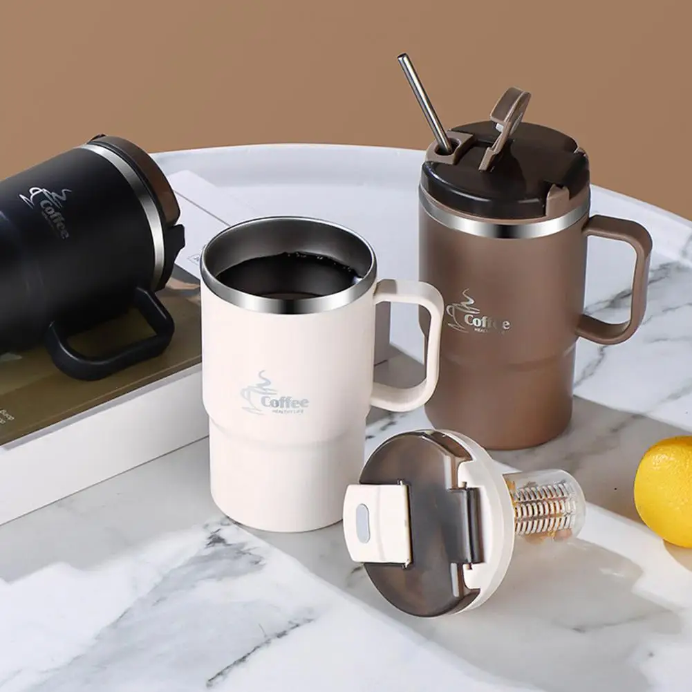 Caneca térmica de aço inoxidável para café e água com tampa com canudo separador para chá e colher dobrável. Livre de BPA.