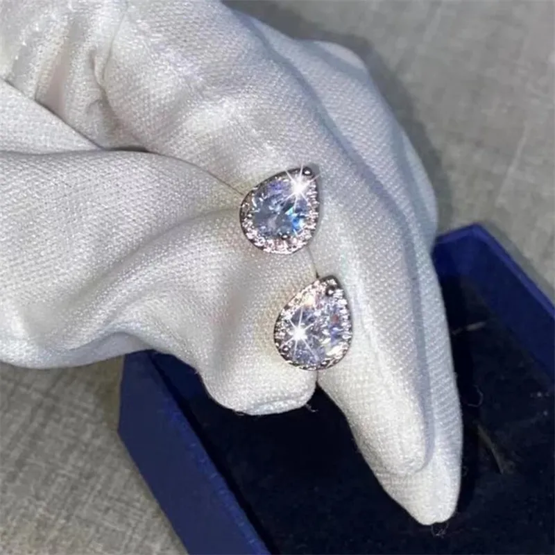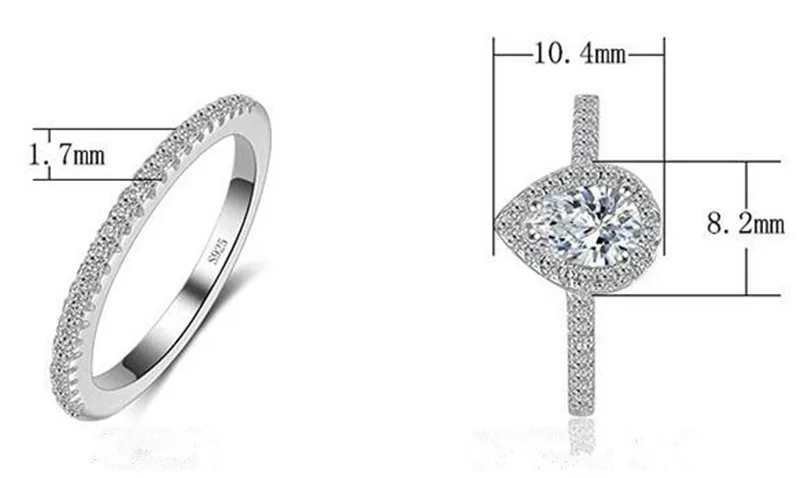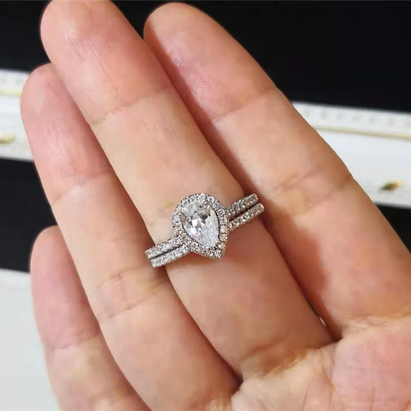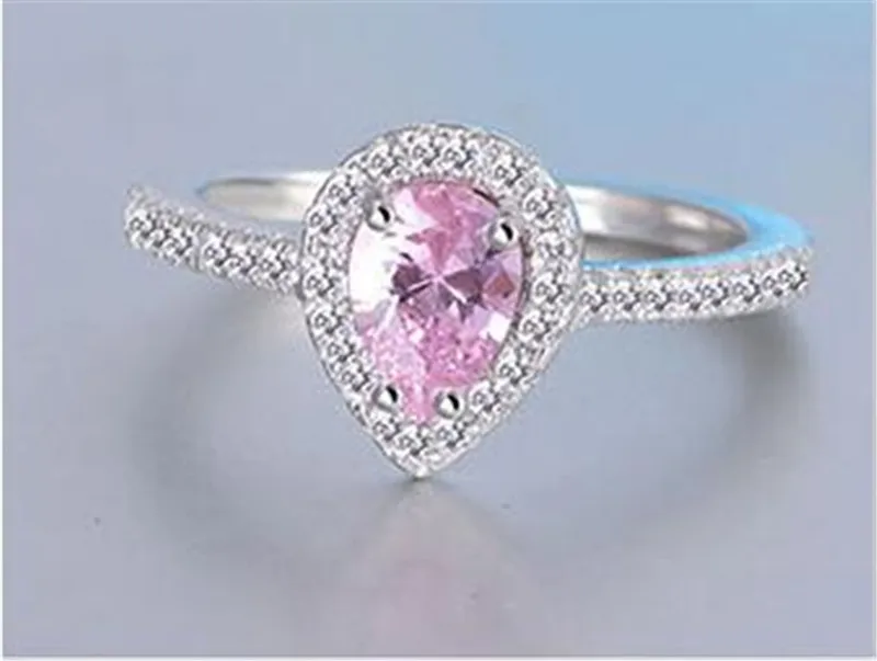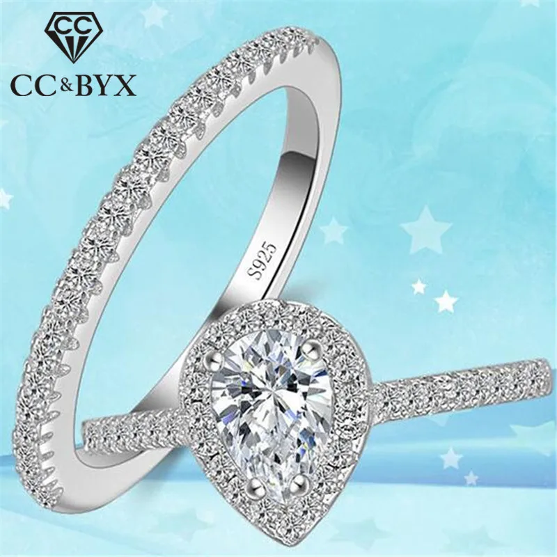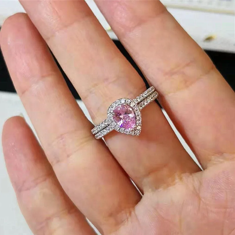 CC-Anéis duplos para mulheres, cor prata, gota d’água, branco e rosa, jóias de casamento nupcial, acessórios de noivado, CC775