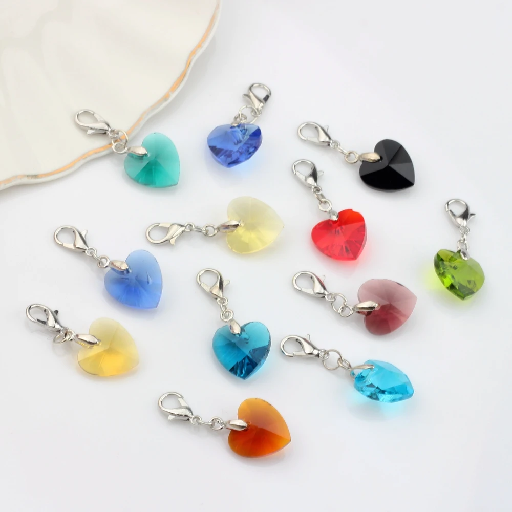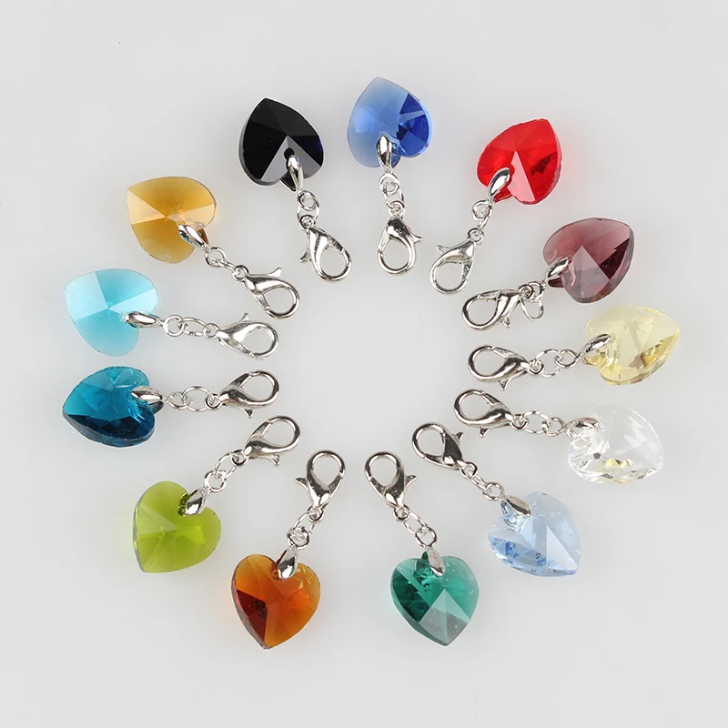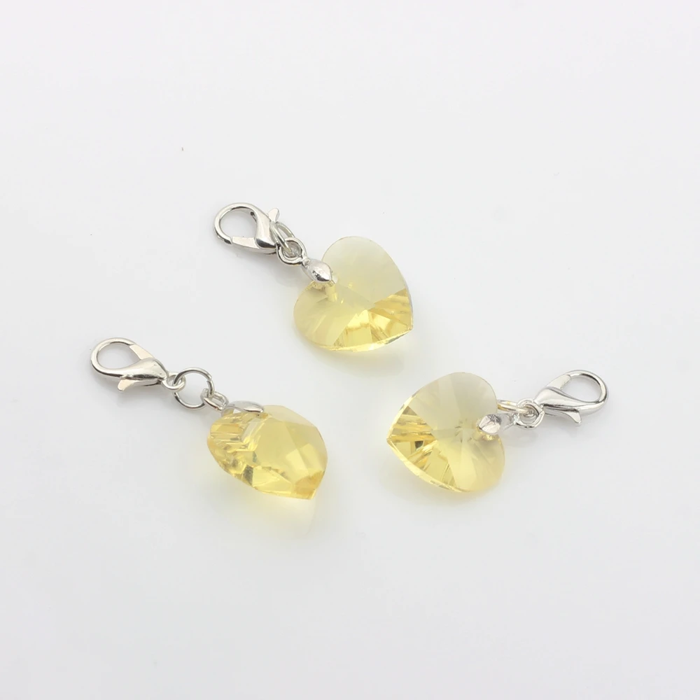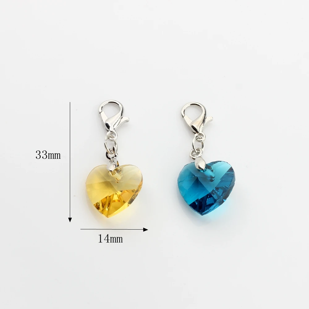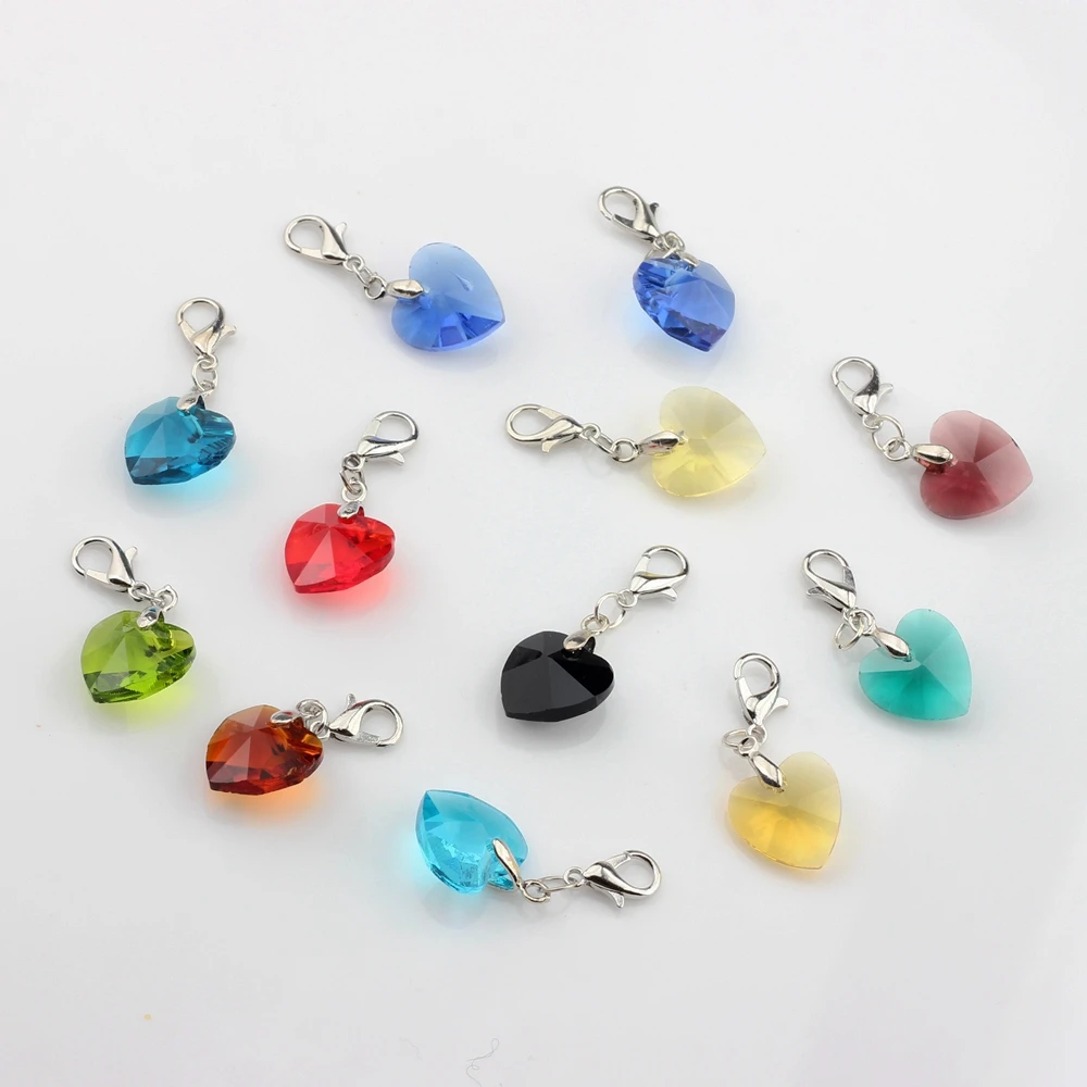 Coração Fecho de lagosta Encantos de cristal, 14mm, apto para vidro, Living Memory Locket, Acessórios DIY, 12 Pcs/Lot