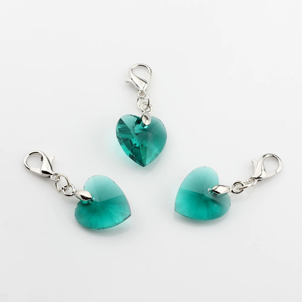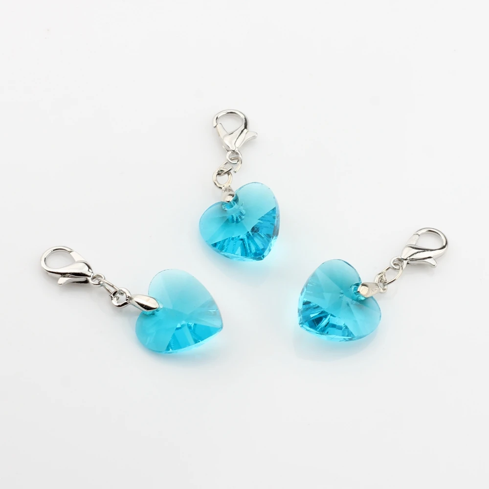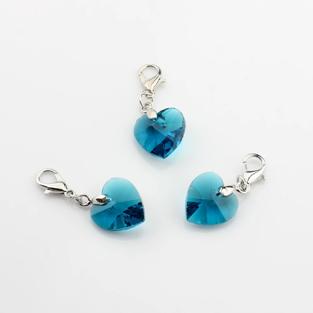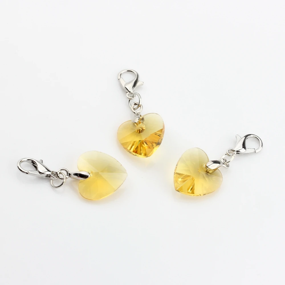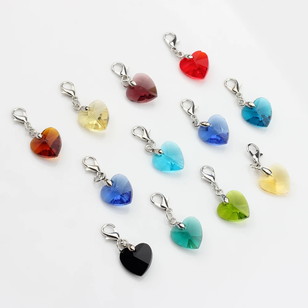 Coração Fecho de lagosta Encantos de cristal, 14mm, apto para vidro, Living Memory Locket, Acessórios DIY, 12 Pcs/Lot