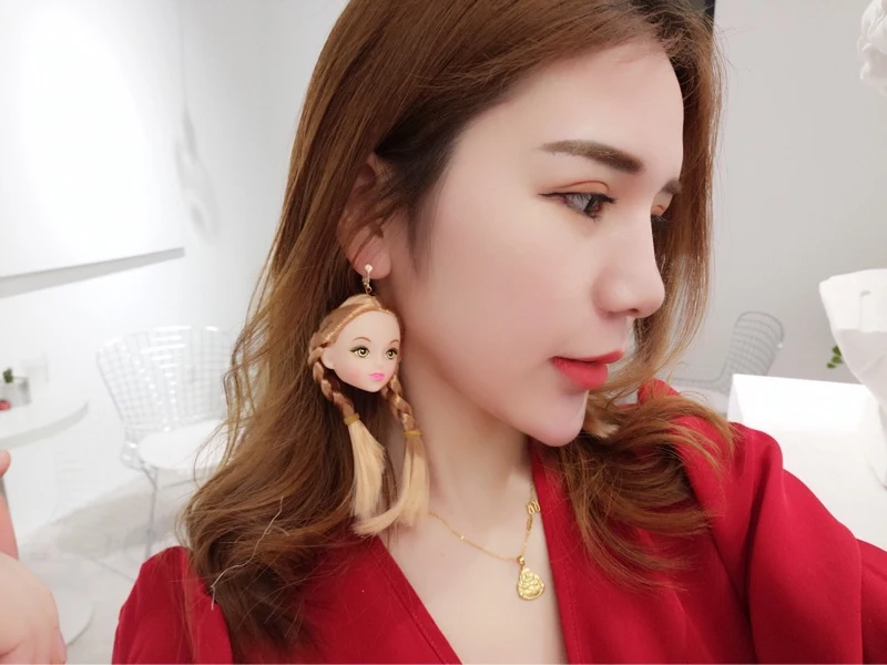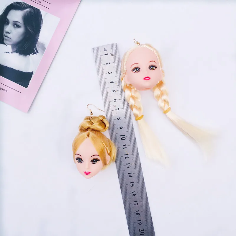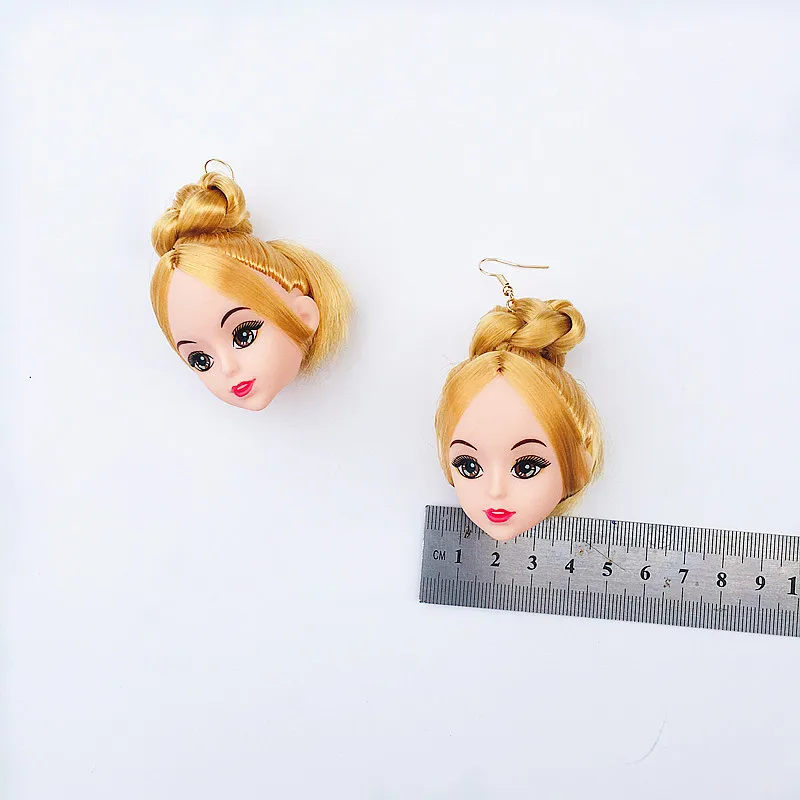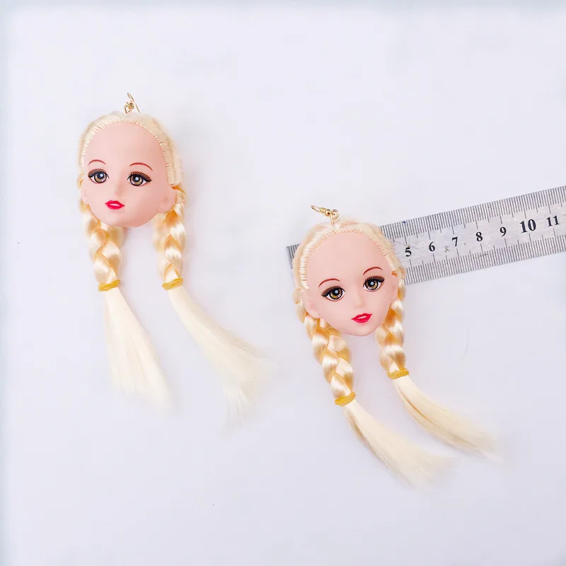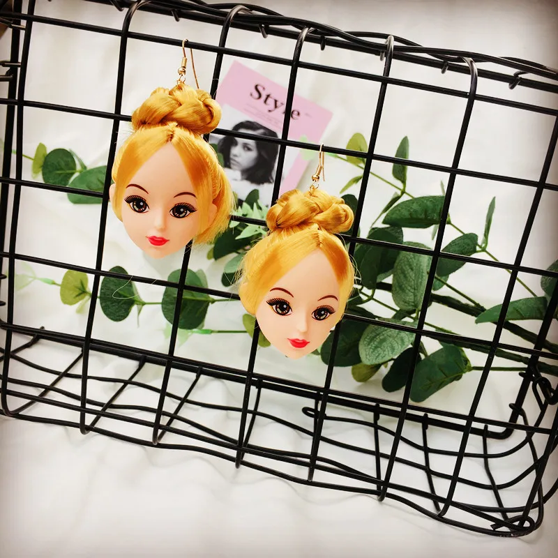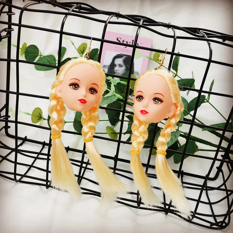 Criativo na moda adorável cabelo meninas boneca cabeça brincos para mulheres longos balançar brincos moda jóias presentes de festa