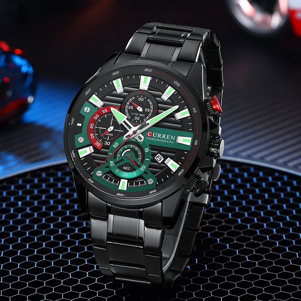 Curren esportes casuais relógios de pulso de quartzo com cronógrafo moda aço inoxidável relógio masculino data automática masculino com caixa