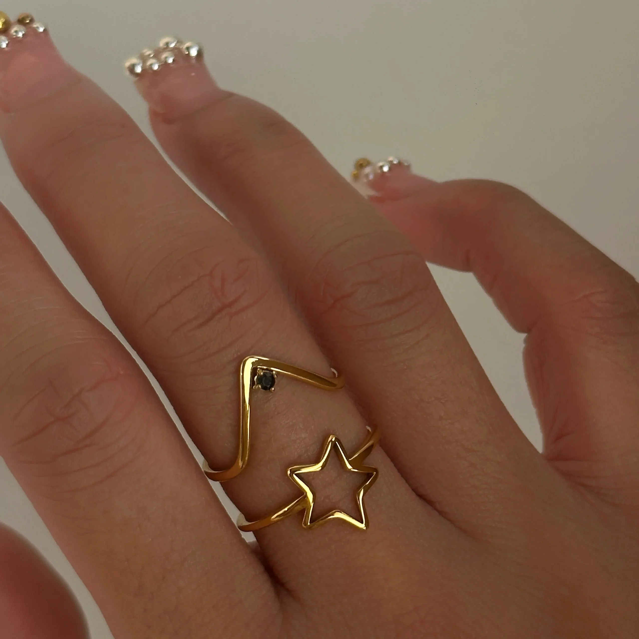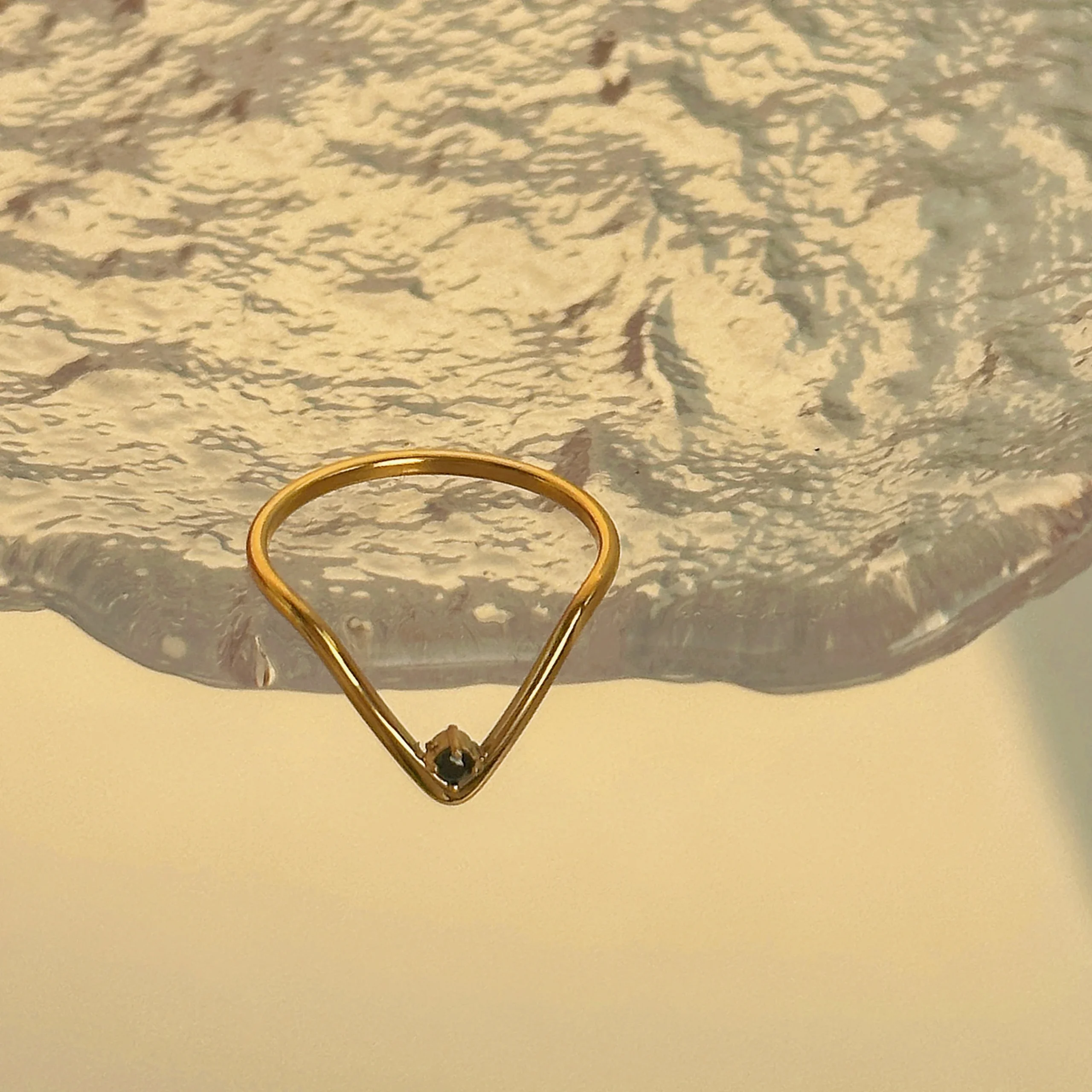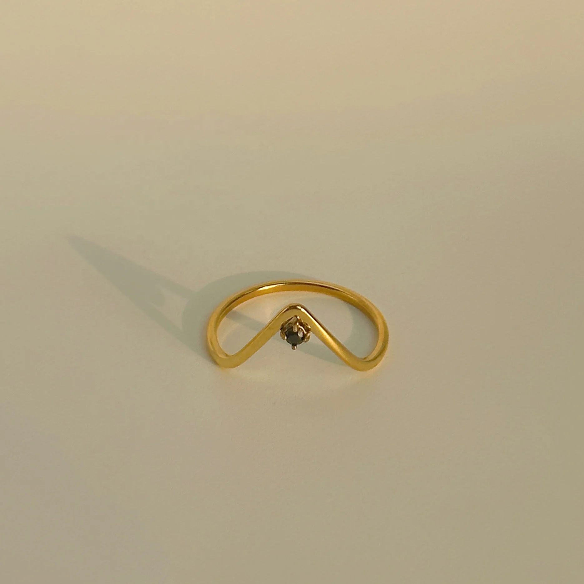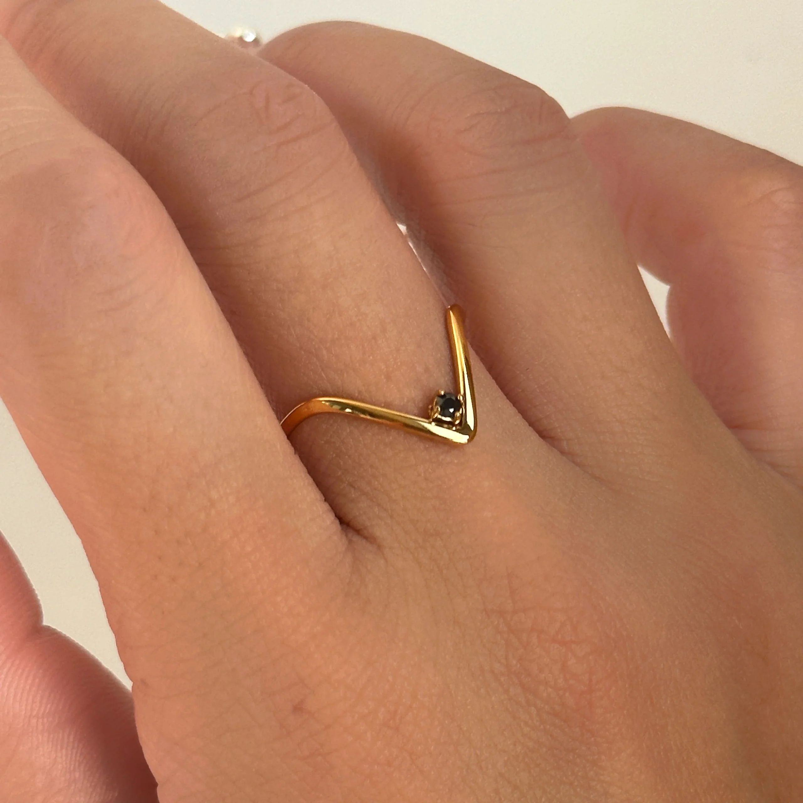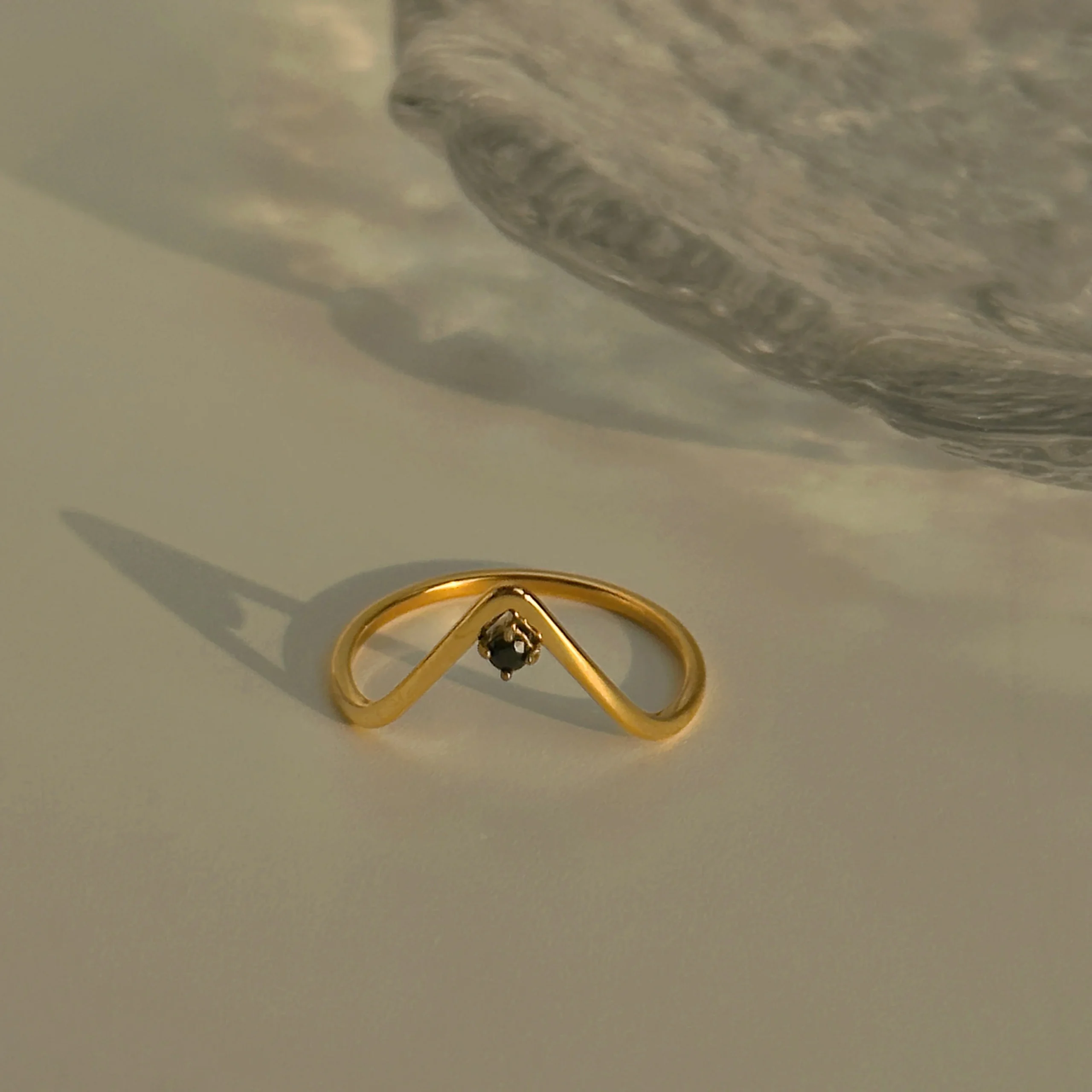 Daseiin verão novo design moderno polido em forma de v preto zircão cnc anel ins na moda 18k banhado a ouro jóias de aço inoxidável feminino