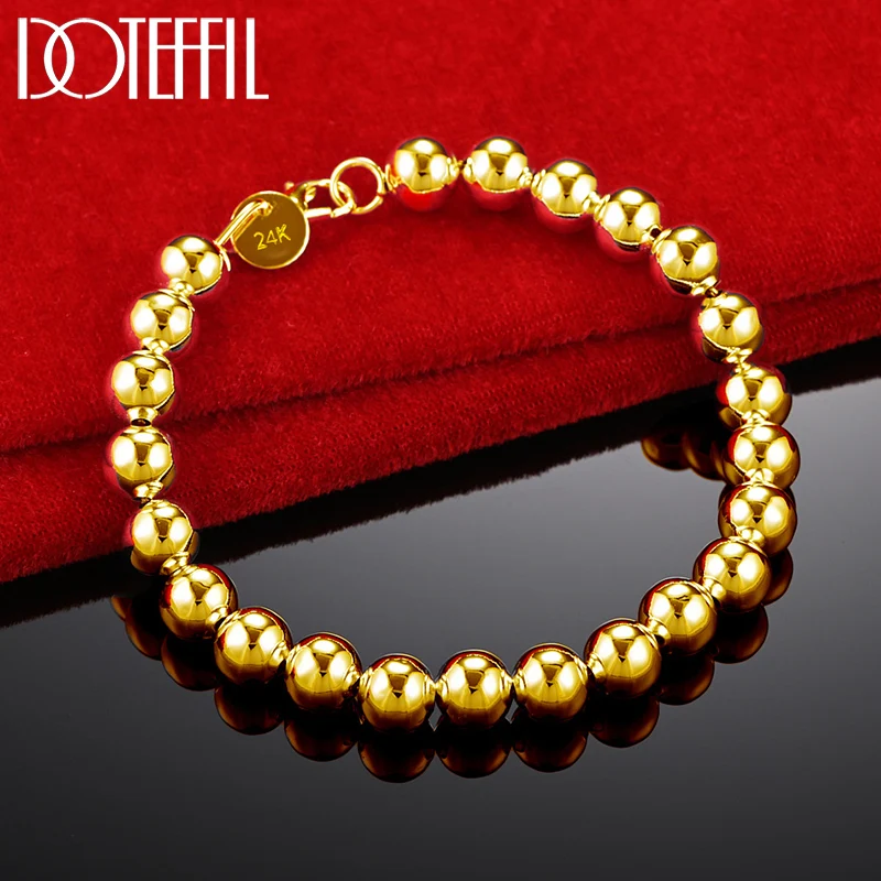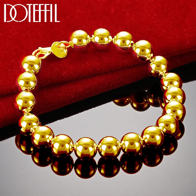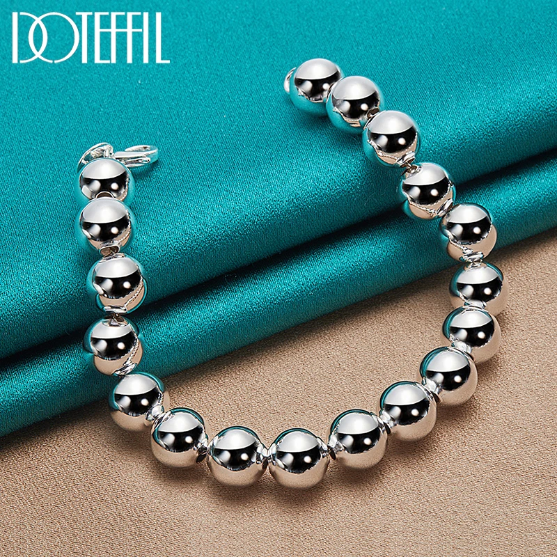 Doteffil 925 prata esterlina 18k ouro 8mm/10mm oco círculo bola contas de prata frisado 20cm pulseira mulher charme moda jóias