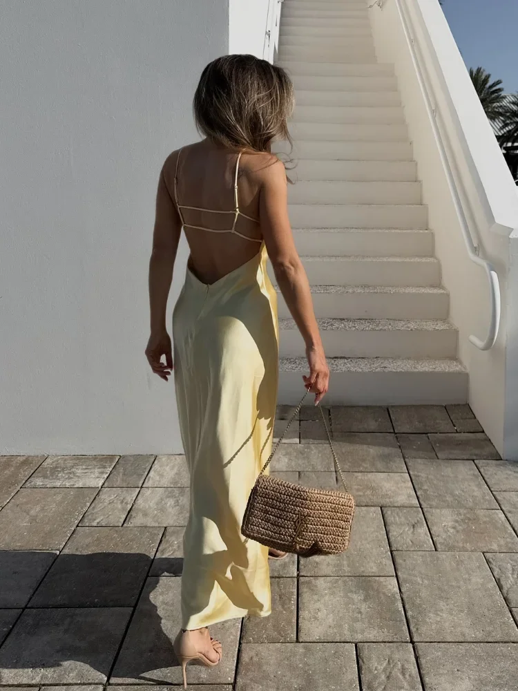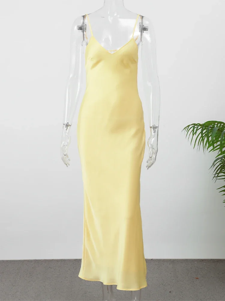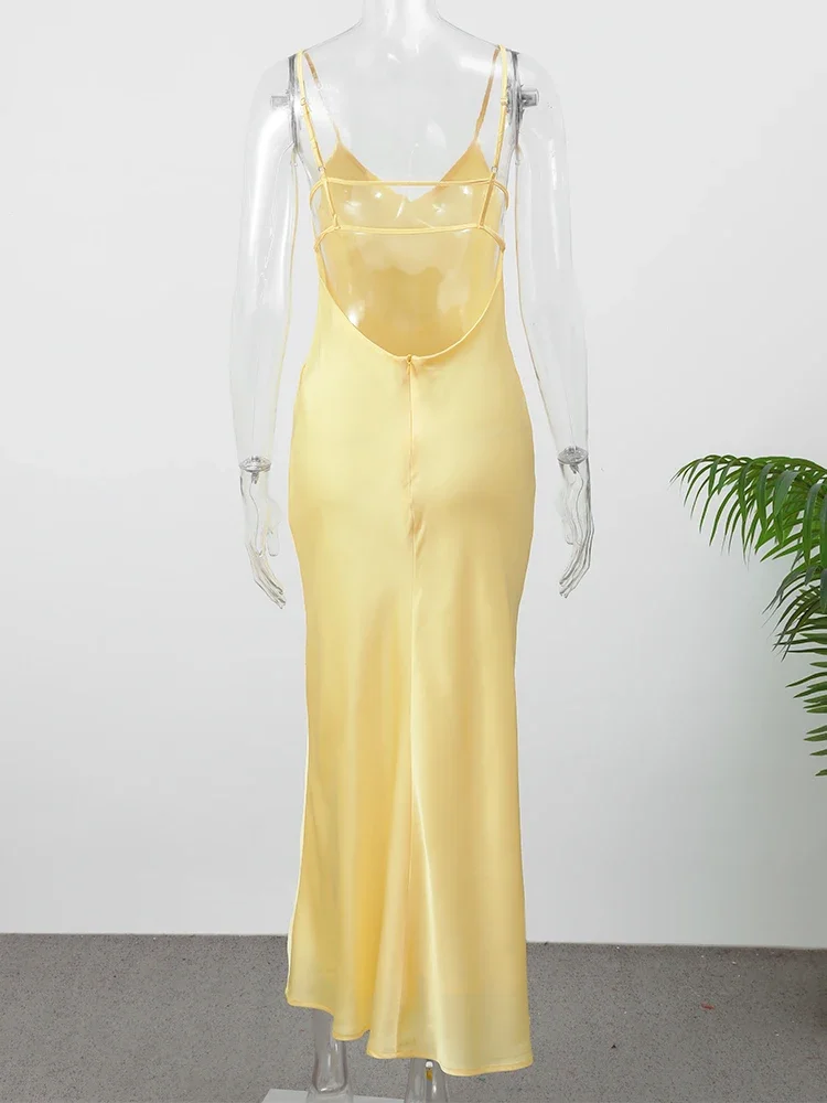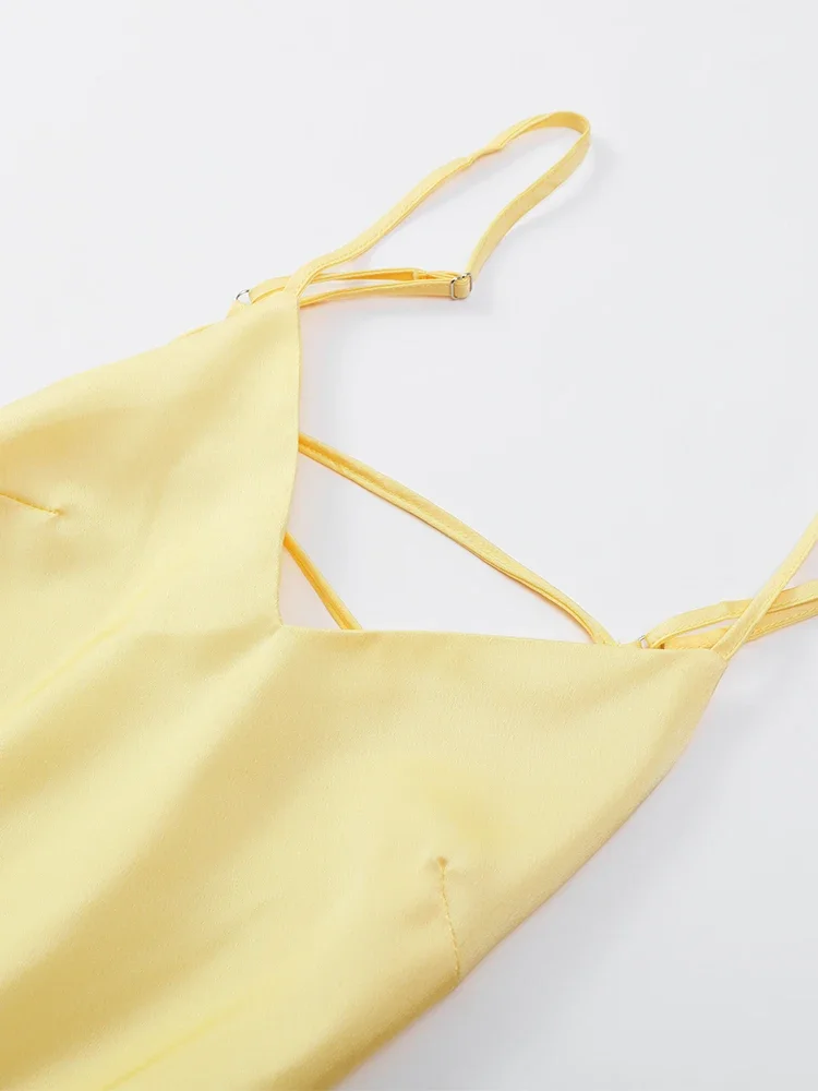 Número do modelo: Women Elegant Satin Lace Up Sling Long Dress