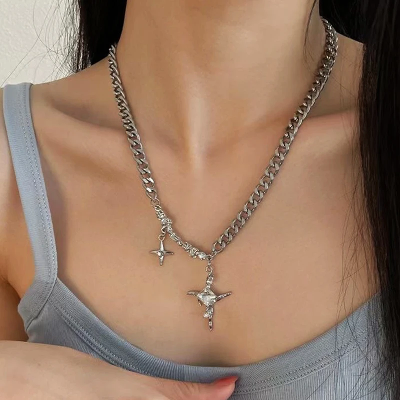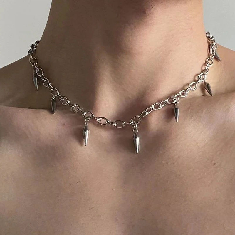 Estilo americano de aço inoxidável atado espinho colar para homens hiphop rua prata cor clavícula colar jóias acessórios
