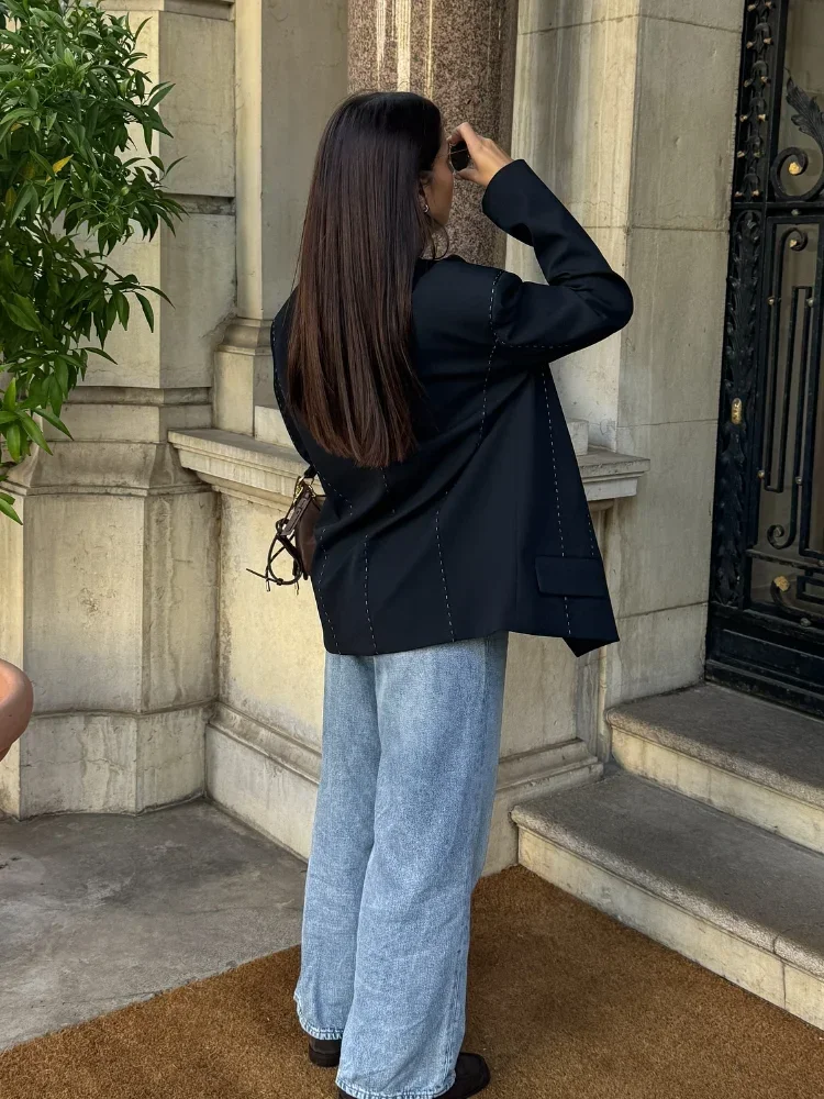 Feminino casual acolchoado fio casaco moda sólida manga longa com decote em v um botão escritório blazer 2025 nova senhora chique comute outerwear