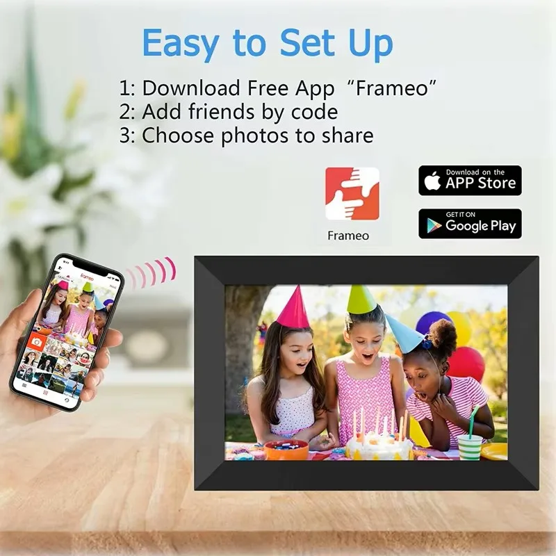 Frameo Digital Picture Frame 10.1 Inch 32GB/64GB Smart WiFi digital photo frame with 1280×800 IPS HD Touch Screen Wall Mountable