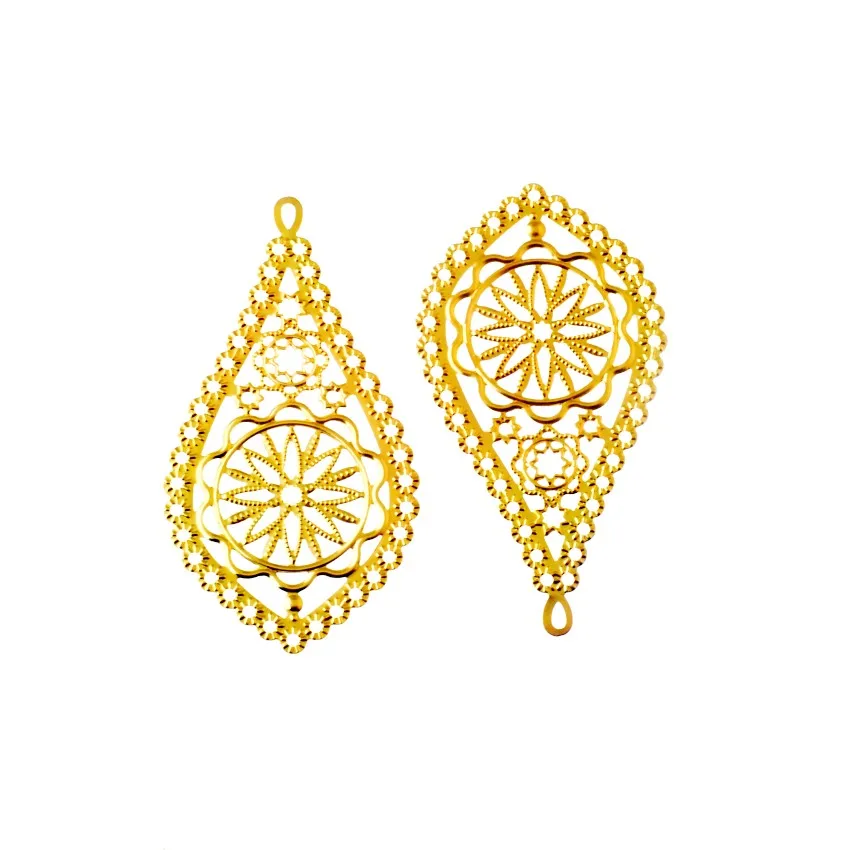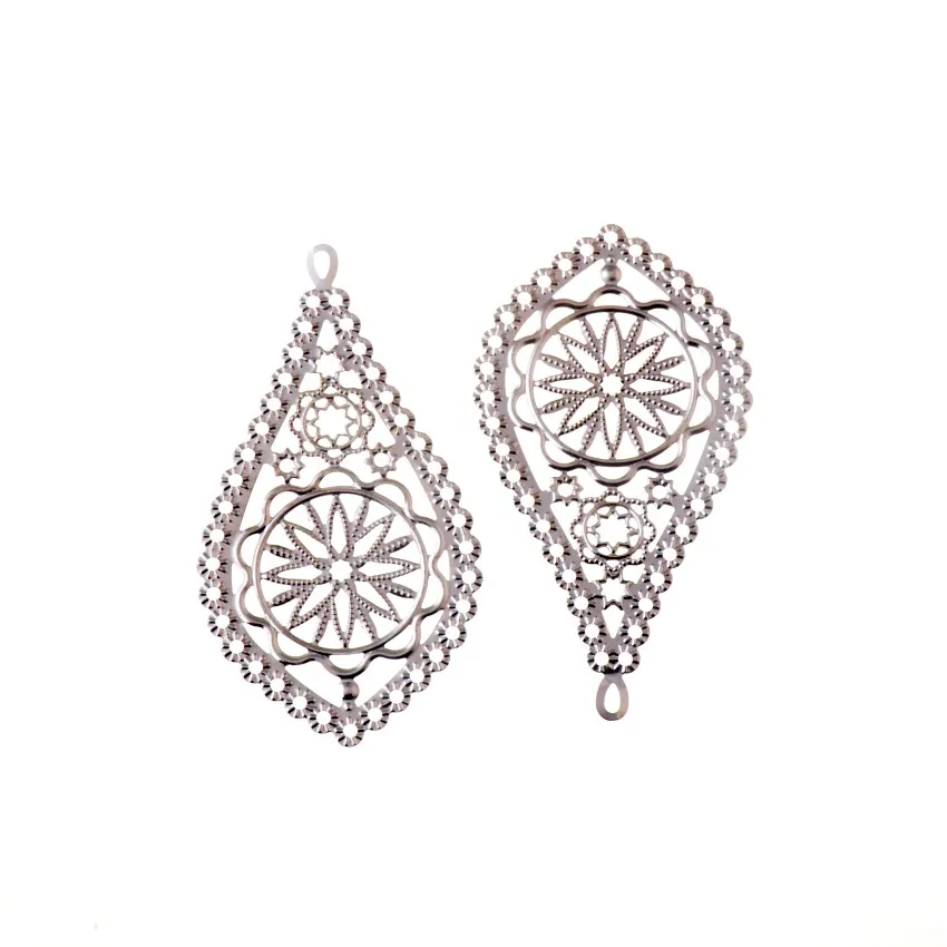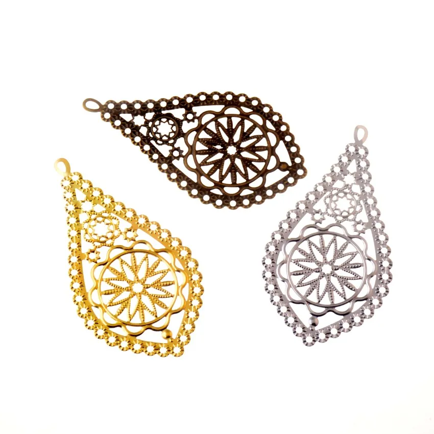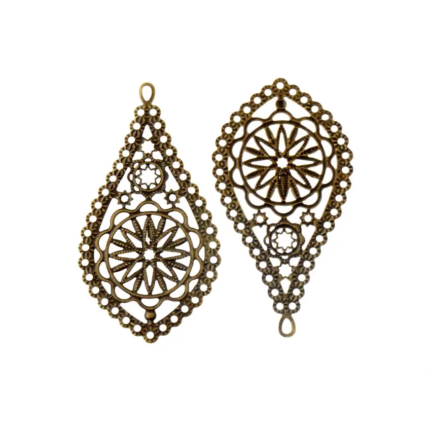 Frete grátis 10 peças conectores de filigrana de flor de bronze artesanato de metal decoração de presente diy 7.8×4.2cm