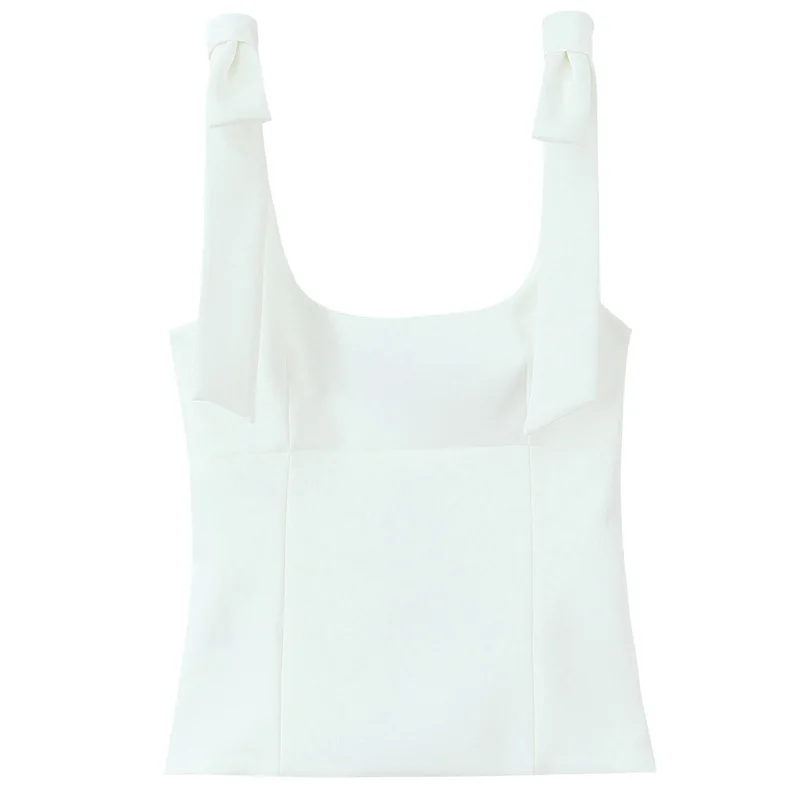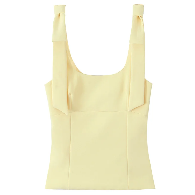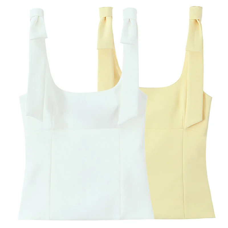 Hxao borboleta colheita topo mulher verão amarelo branco deslizamento topo bonito arco fora do ombro regata tanques & camis sem mangas sem costas topos