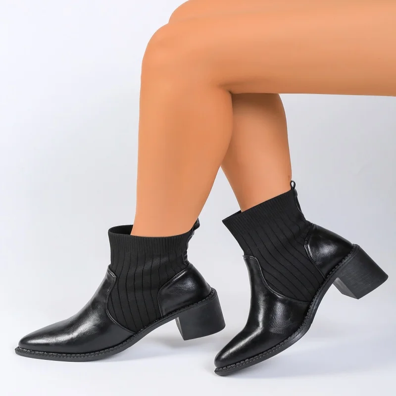 Inverno novo salto quadrado apontado confortável casual botas de comprimento médio elegante e sexy plus size botas de cavaleiro para mulher