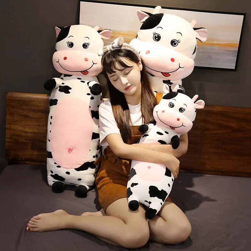 Leite vaca Cartoon Plush Toys para meninas, bicho de pelúcia, travesseiro de dormir, bonecas, presentes de aniversário