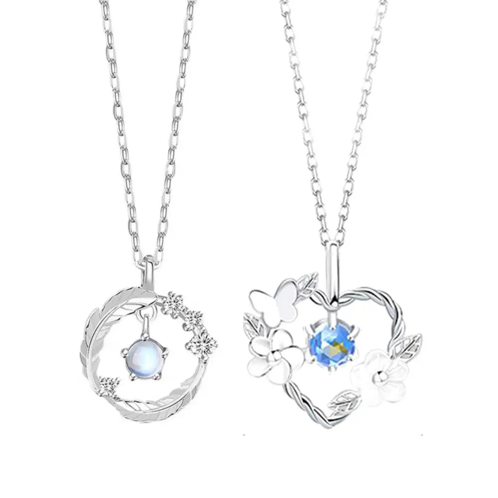 Lenda das estrelas e luas ~ colar elegante em forma de pena flor coração