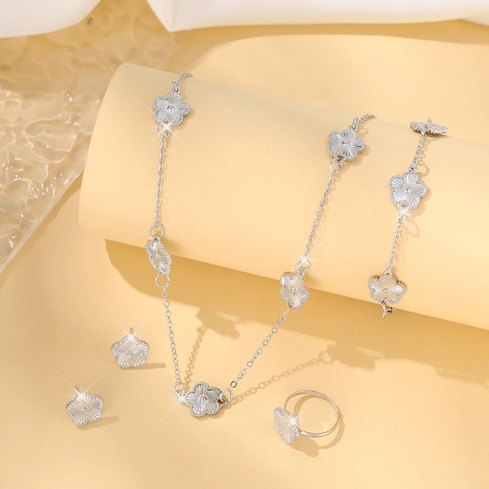 Lucky cinco pétalas flor trevo de cinco folhas pulseira brincos colar conjunto de três peças para mulher acessórios elegantes jóias de festa