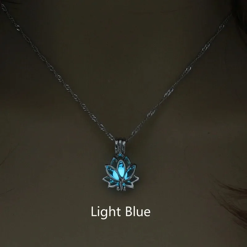 Luminoso brilhando no escuro lua flor de lótus em forma de pingente colar para mulheres yoga oração budismo jóias