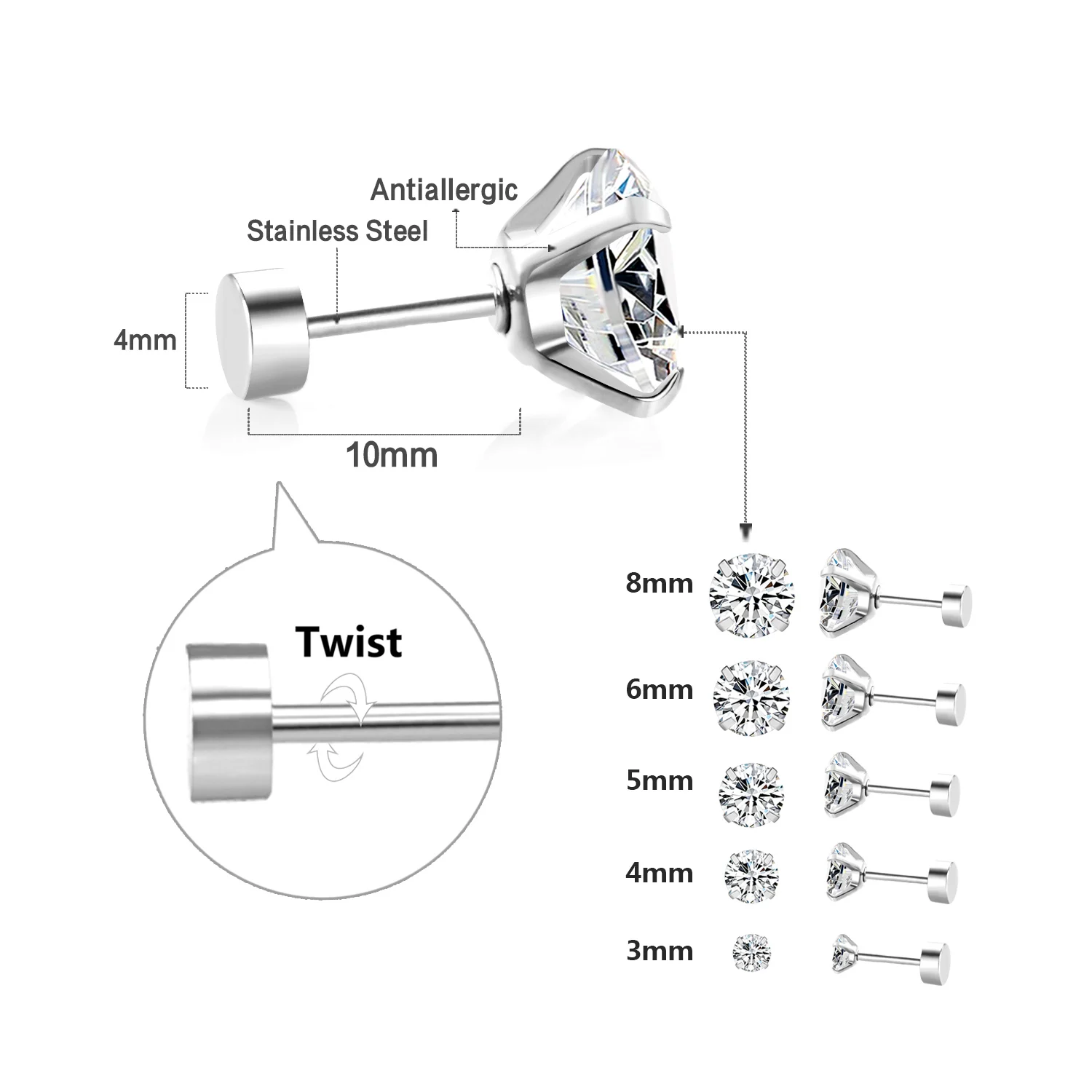 Tipo de brinco: Brincos do parafuso prisioneiro