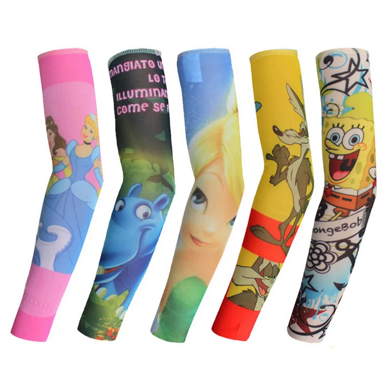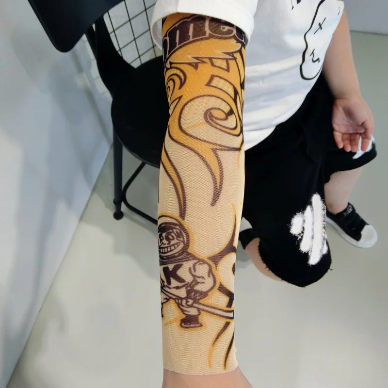Manga de tatuagem temporária falsa elástica, desenhos animados, corpo legal da criança, meias de braço, modelo Tatoo 39, manga quente mista, 5pcs