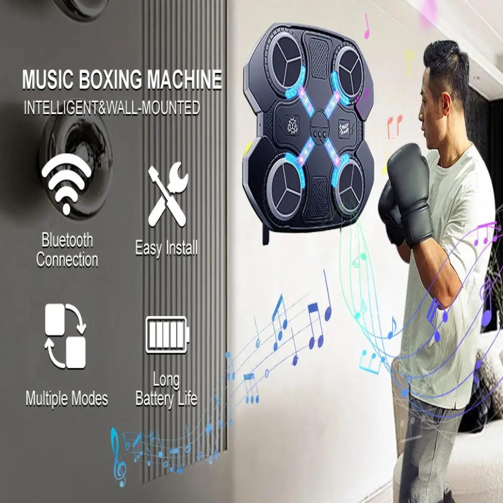Máquina de boxe inteligente, treinador de alvo de parede de música doméstica com luvas, equipamentos de jogos para crianças e adultos, descompressão com bluetooth