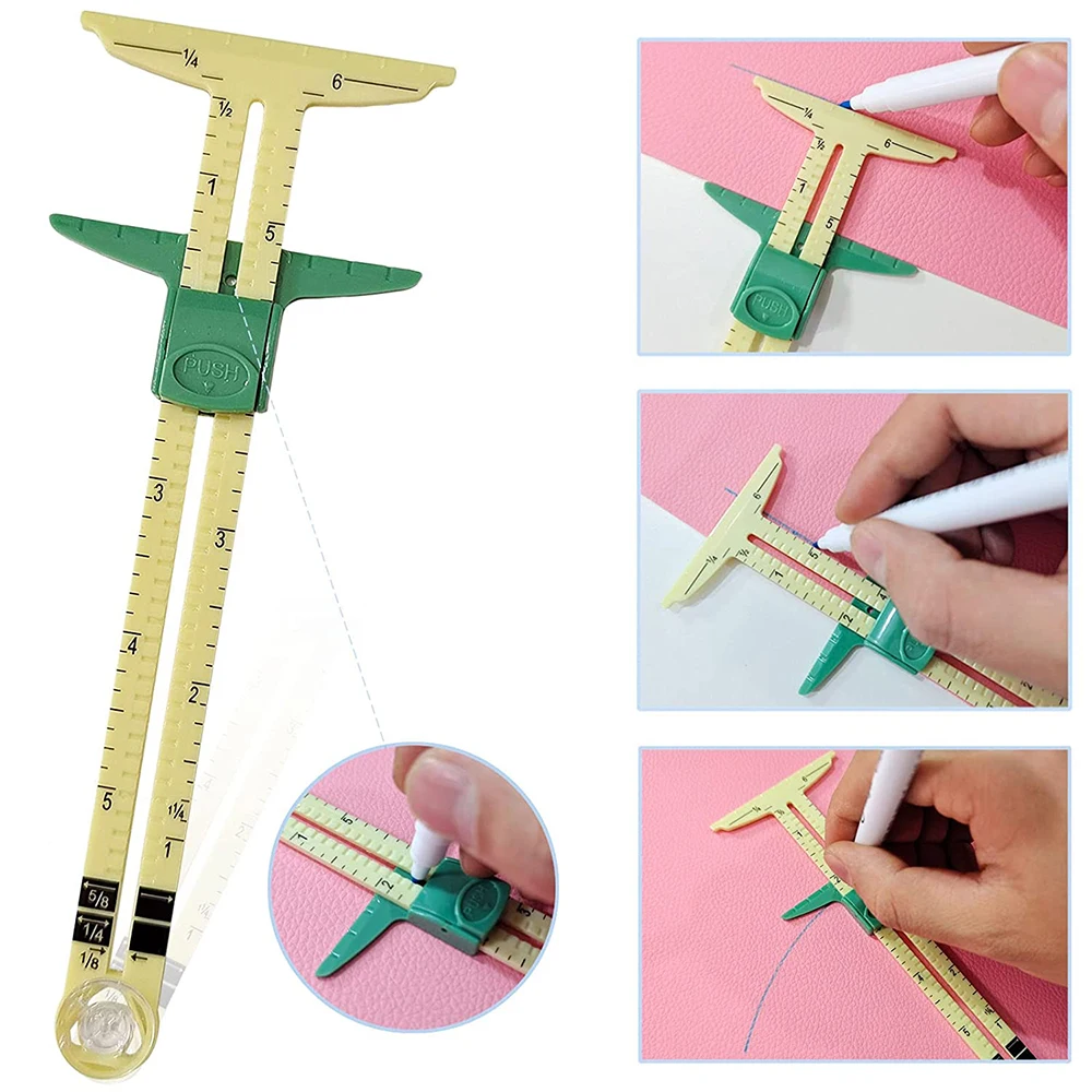Medidor deslizante 5 em 1, ferramenta de medição de costura para artesanato faça você mesmo, acessórios de patchwork