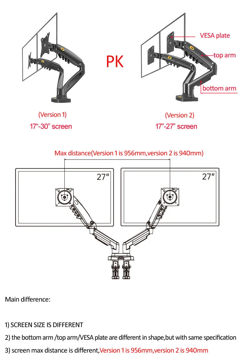 Nb nova mola a gás f160 17 “-27” 30 “suporte de monitor duplo braço desktop 360 girar suporte de computador 2-9kg suporte de monitor porta usb3.0