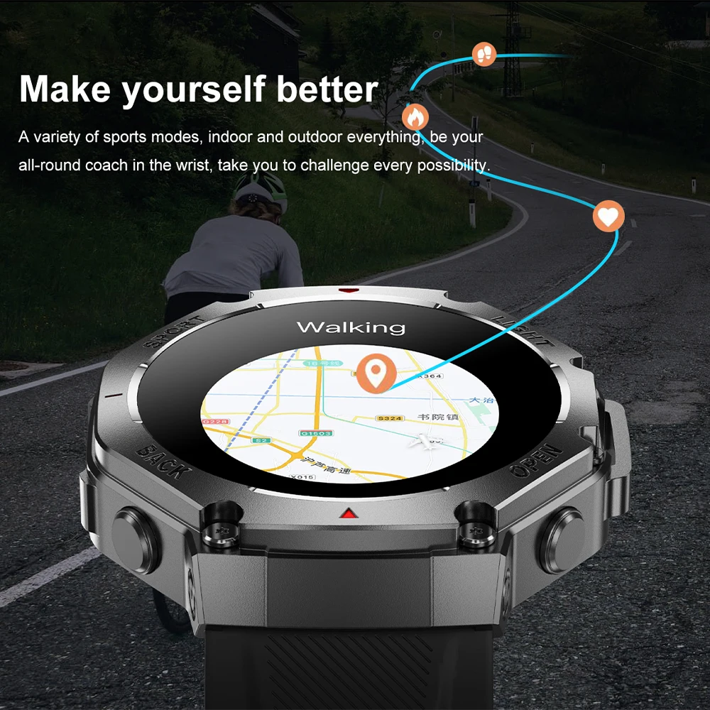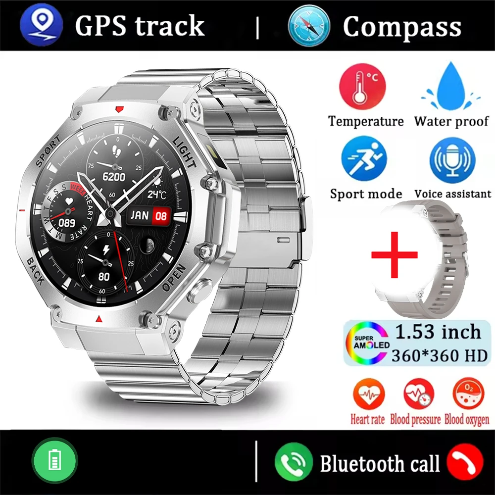 Novo Smartwatch Esportivo Masculino 2025 com GPS, Tela AMOLED, Monitoramento de Frequência Cardíaca, Lanterna LED, NFC, Chamadas Bluetooth e Resistente à Água 3ATM.