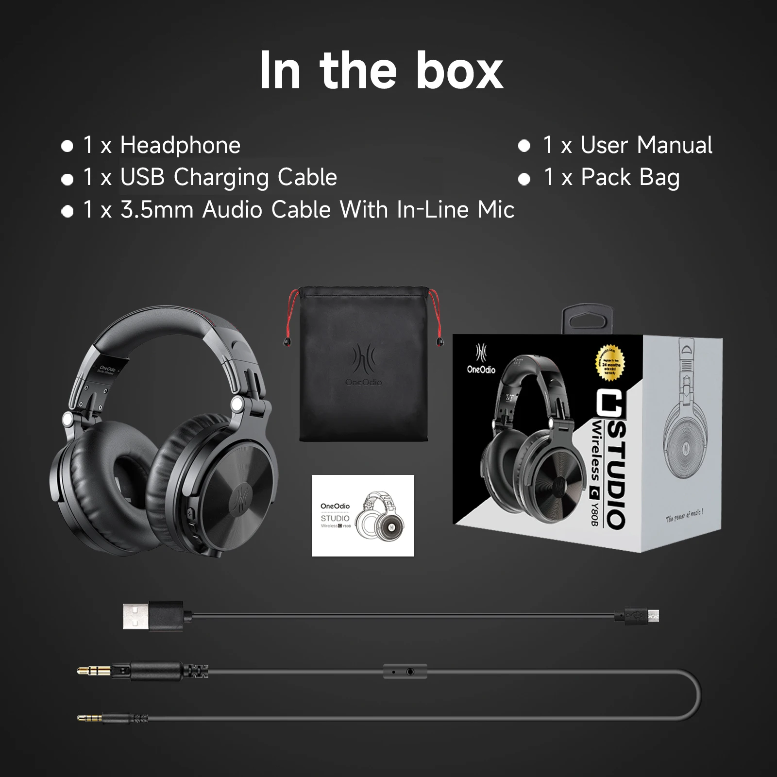 Oneodio fones de ouvido bluetooth sem fio com microfone 110hrs Hi-Res dobrável sobre a orelha celulares bluetooth 5.2 para o telefone móvel pc esportes headphone