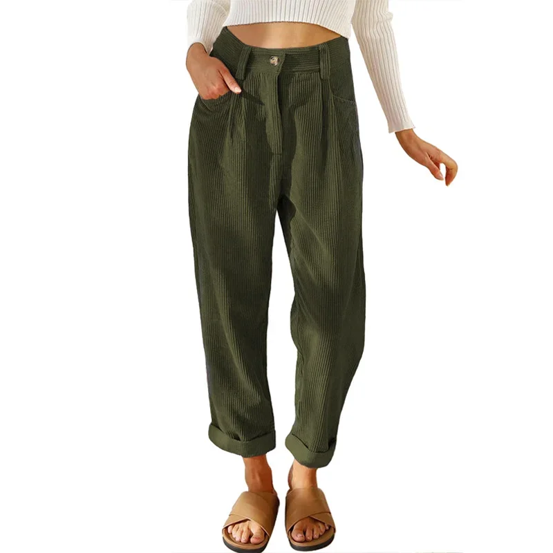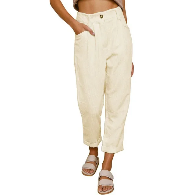 Outono e inverno novas calças femininas de cintura alta casuais europa e américa sólida veludo solto calças retas femininas