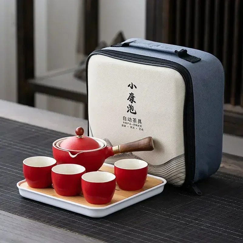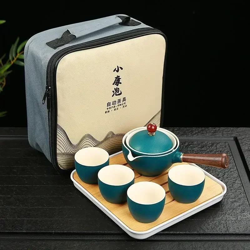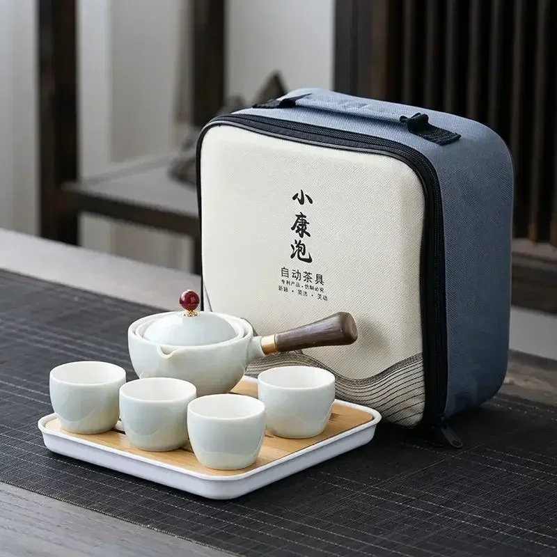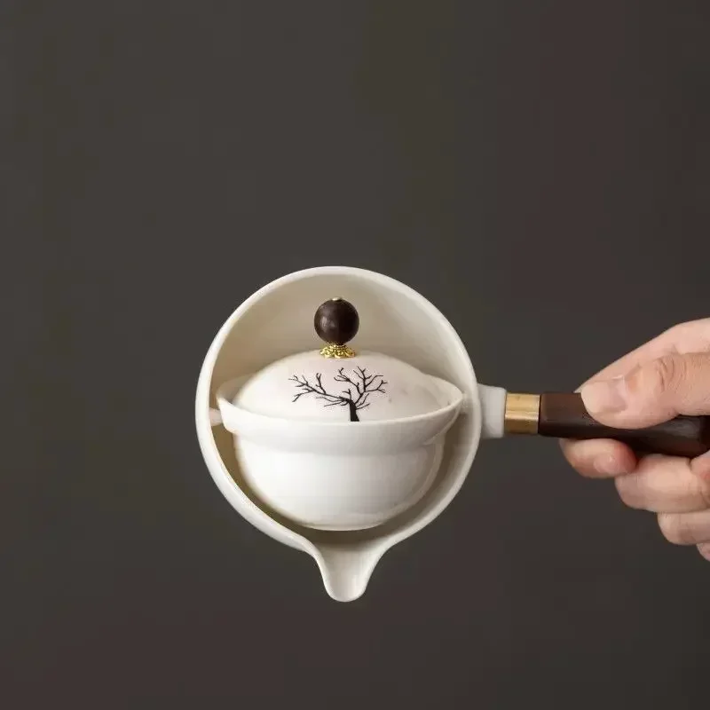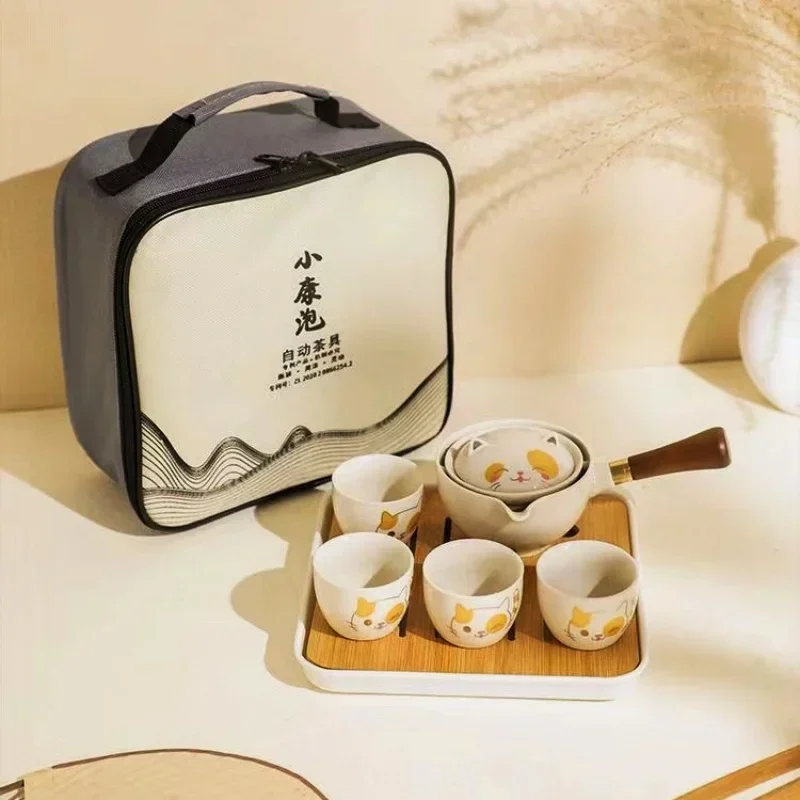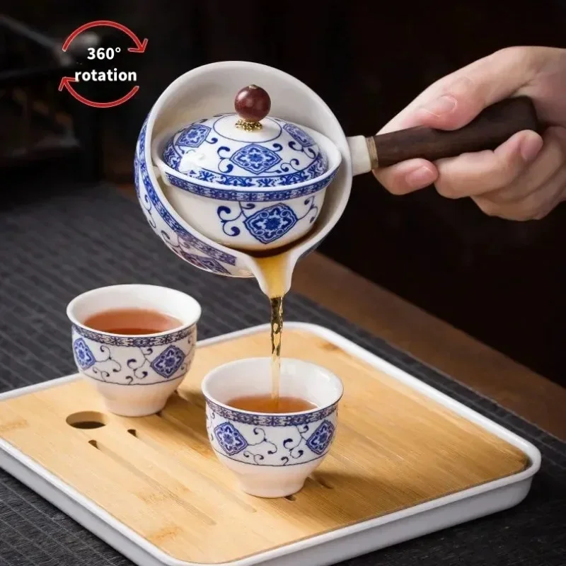 Portátil Viagem Cerâmica Chá Set, Preguiçoso Chá Brewing Ferramenta, Criativo Bule Rotativo, Acampamento ao ar livre, Retro Coffee Supplies