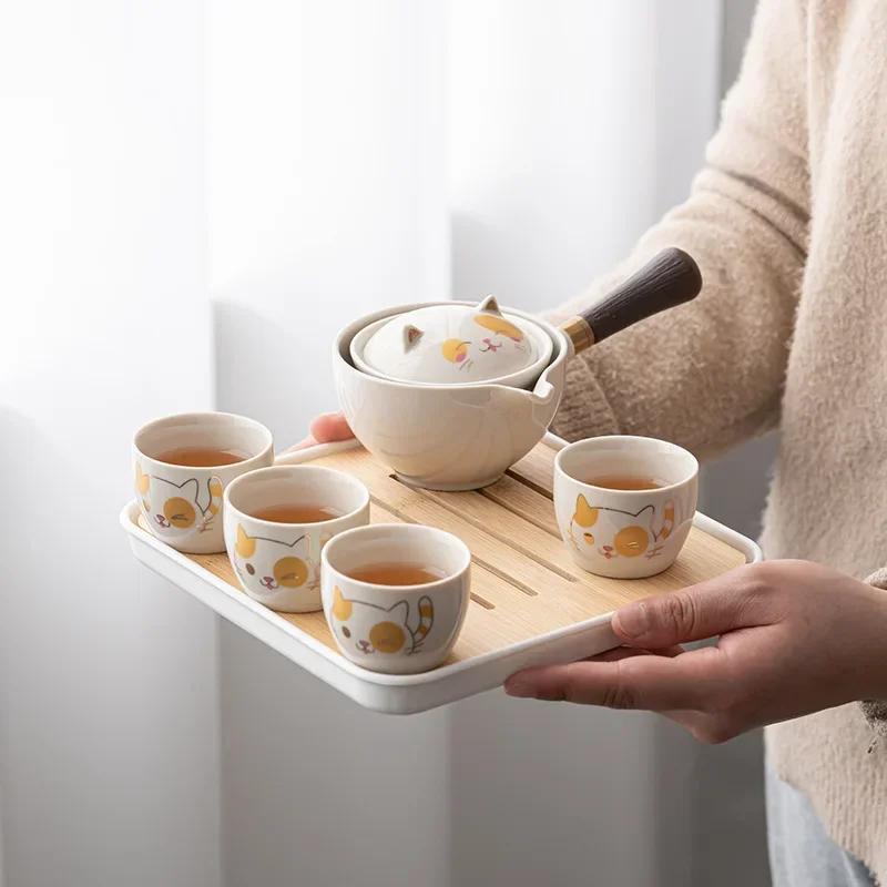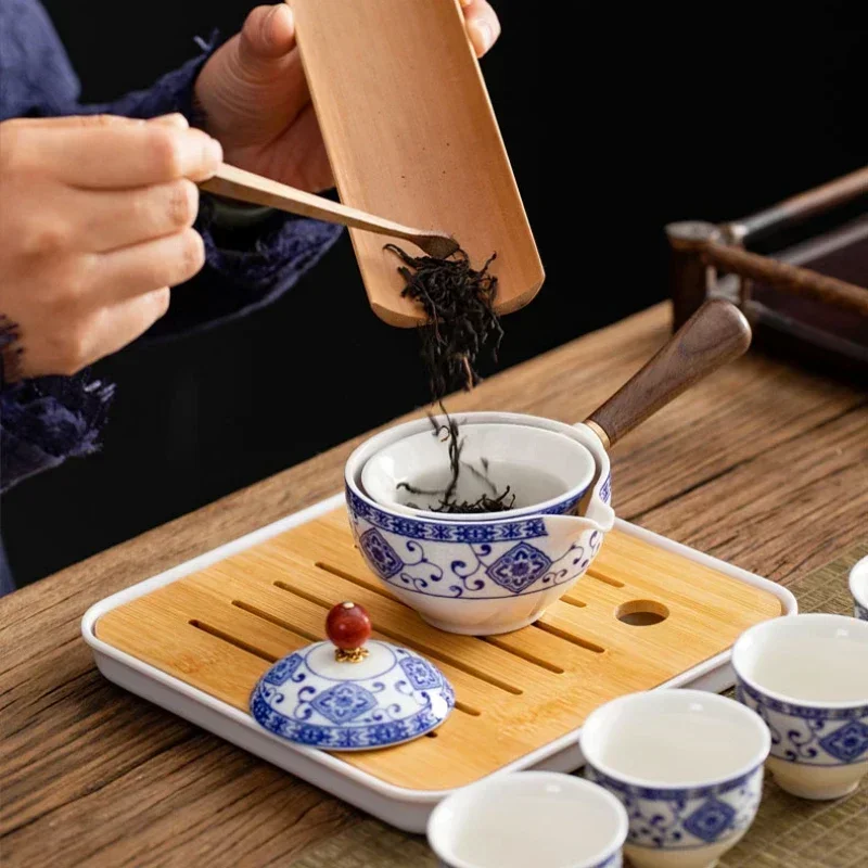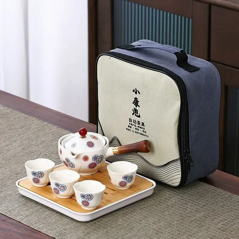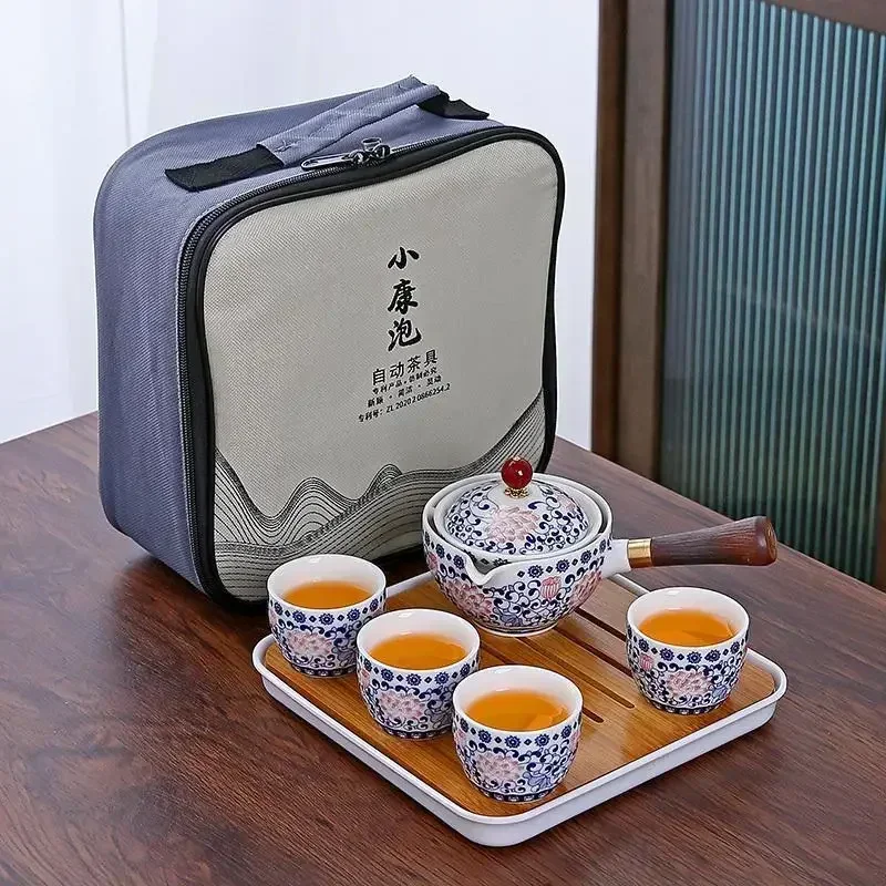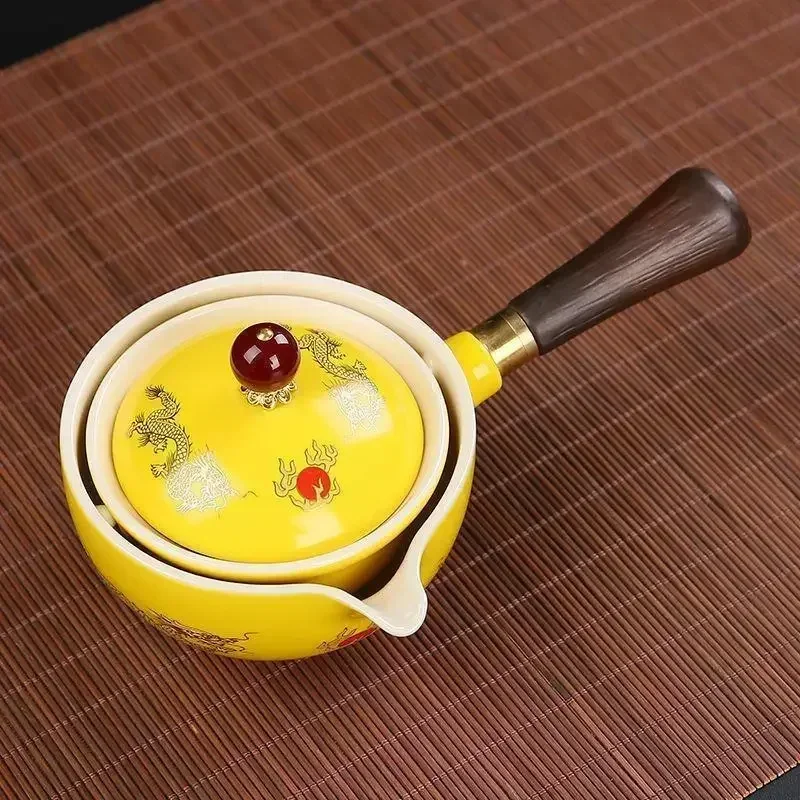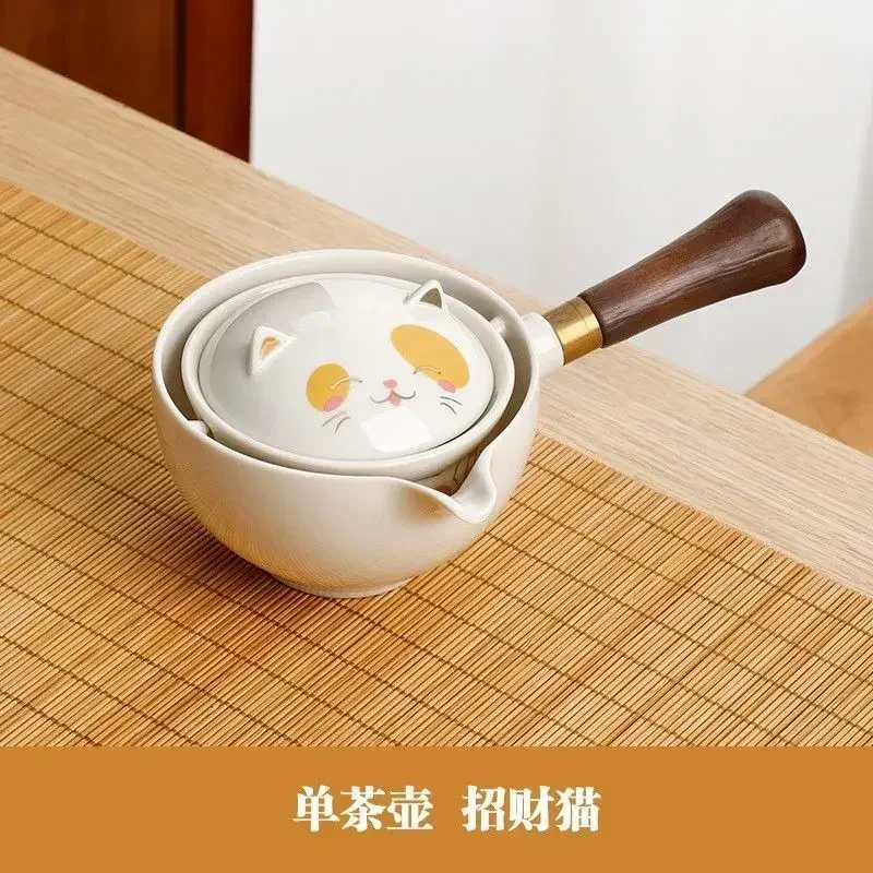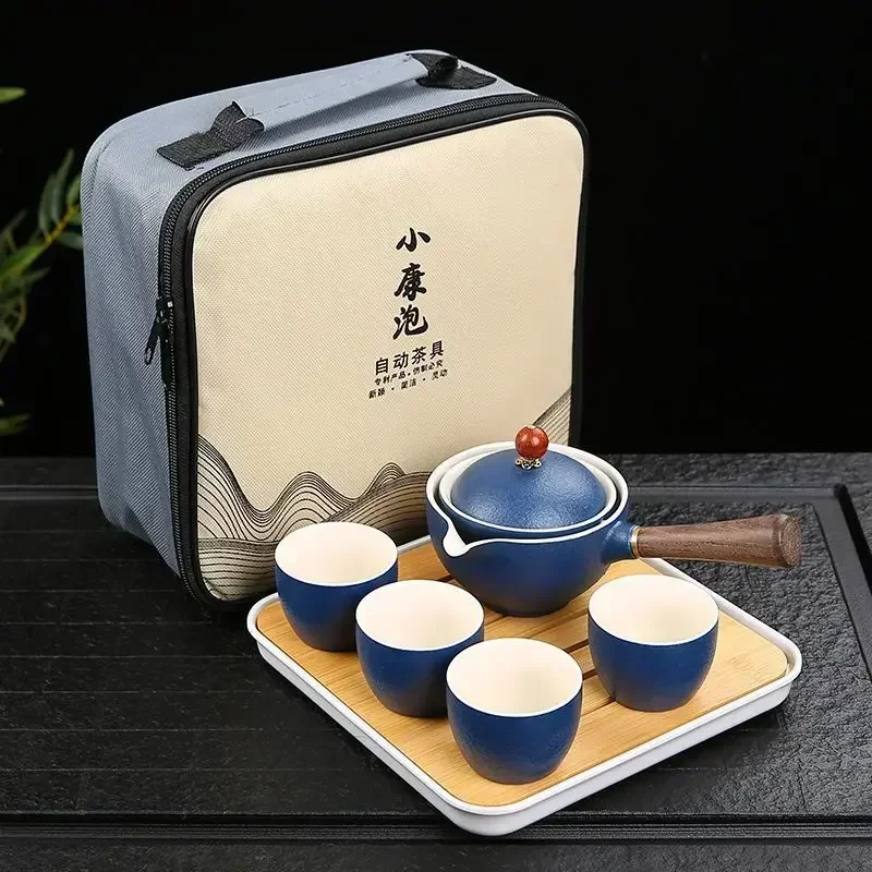Portátil Viagem Cerâmica Chá Set, Preguiçoso Chá Brewing Ferramenta, Criativo Bule Rotativo, Acampamento ao ar livre, Retro Coffee Supplies