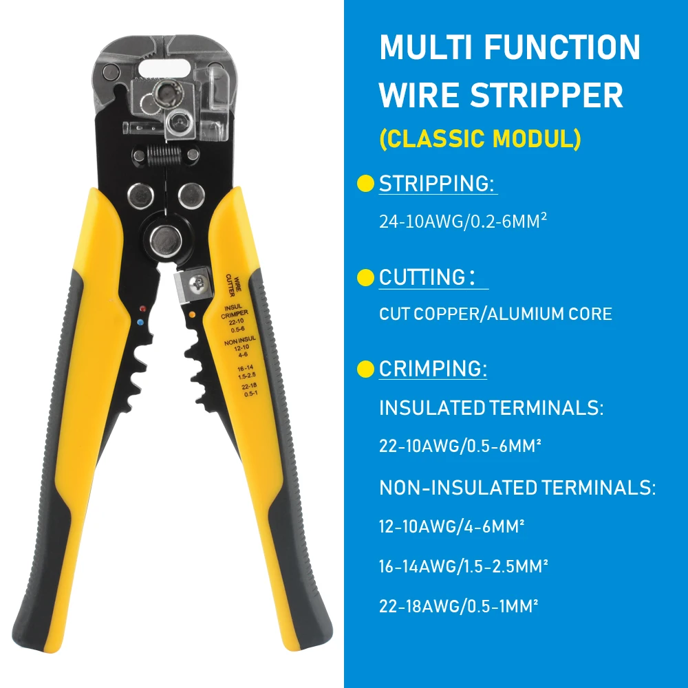 Profissional eletricista fio mão ferramenta terminal conjunto cabo stripper cortador crimper fio automático friso descascamento alicate