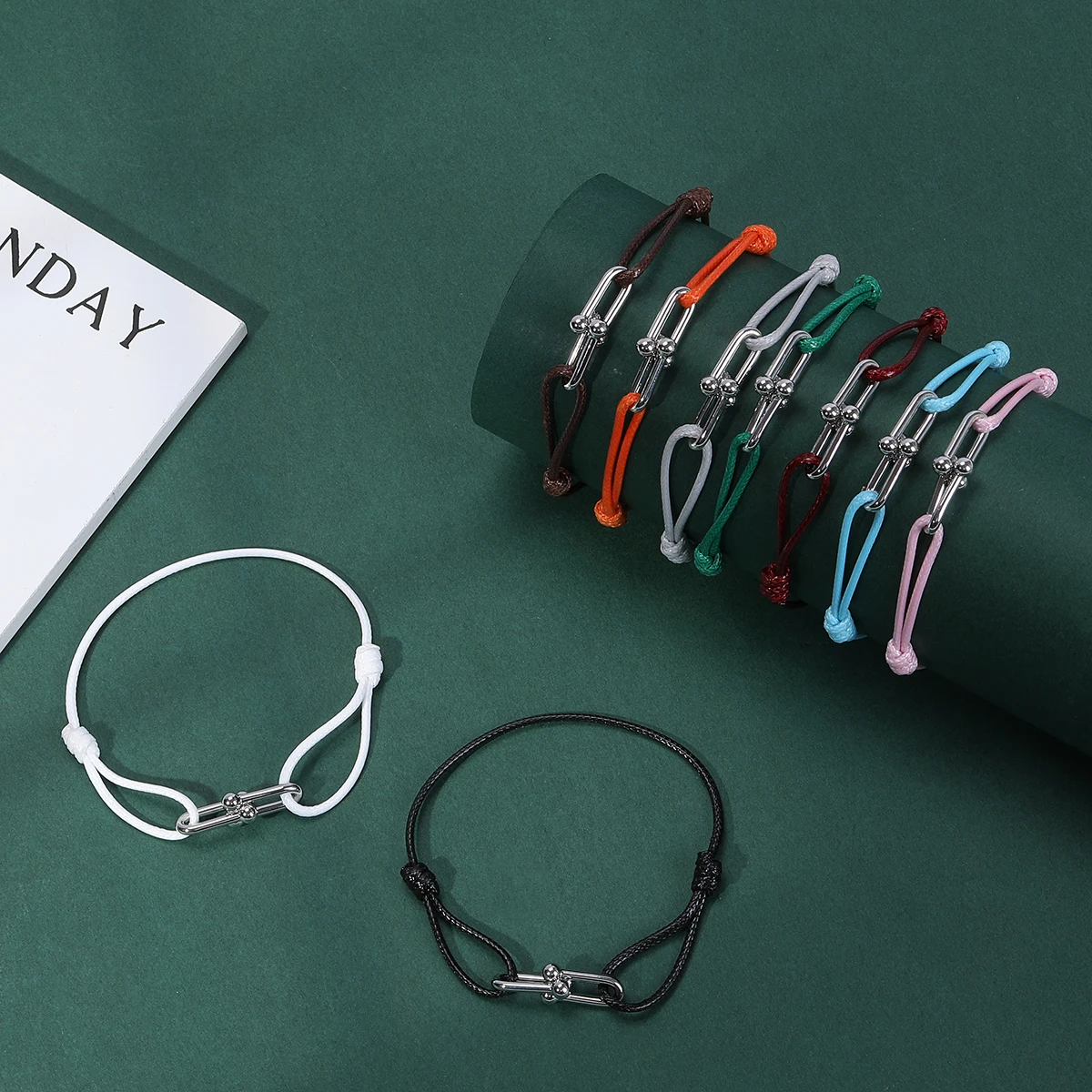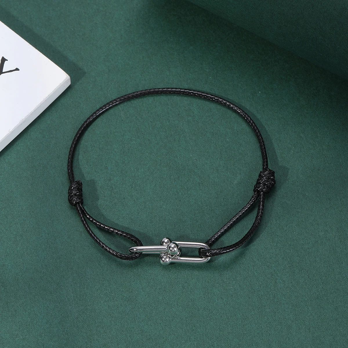 Pulseiras com pingente geométrico simples para homens e mulheres, comprimento ajustável, corda preta, casual, amor, casal, corrente de pulso, joias