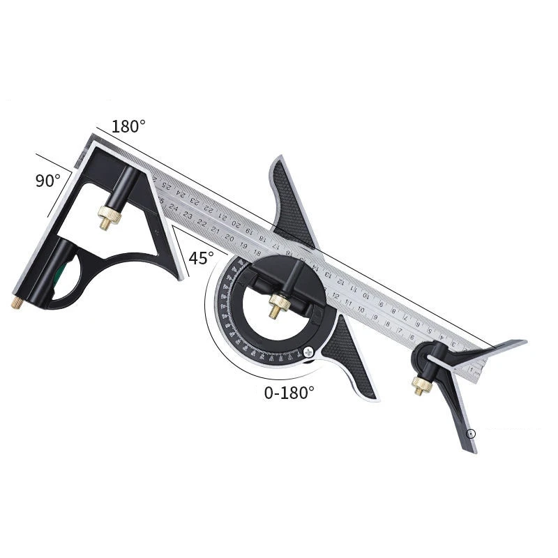 Régua ajustável do ângulo direito e transferidor, combinação multifuncional, ferramenta de medição móvel, instrumento de medição